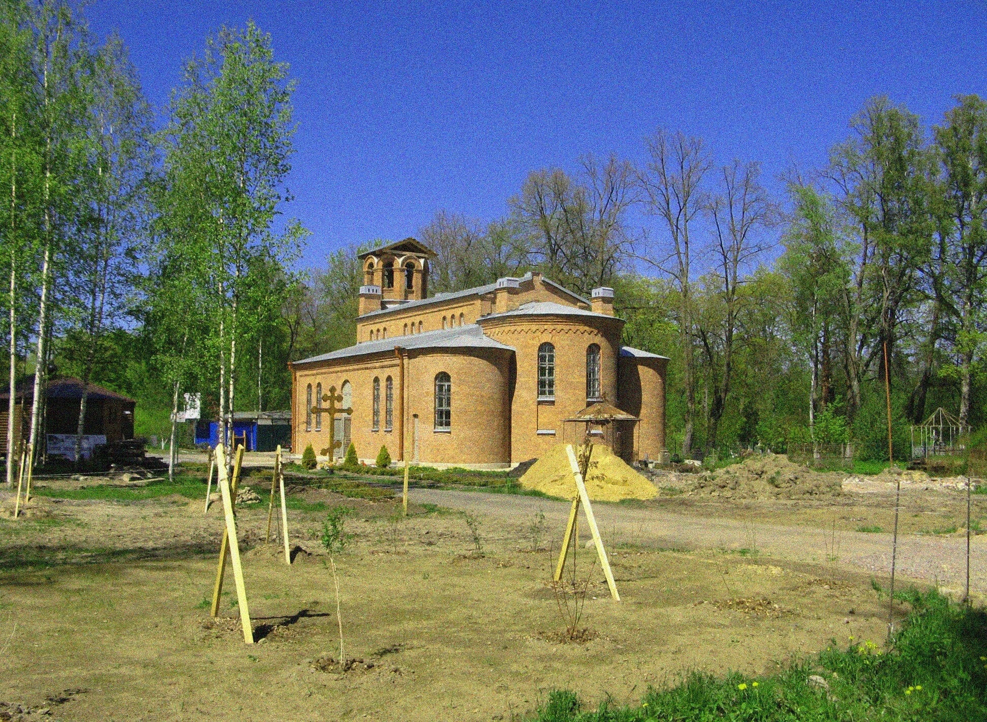Территория вокруг храма благоустраивается, о чём свидетельствуют аккуратно высаженные молодые деревца. Это символизирует непрерывность жизни и заботу прихожан о своей святыне. Церковь Святой Живоначальной Троицы была построена в 1860 году для 147-го Самарского пехотного полка, дислоцировавшегося в Ораниенбауме, и освящена во имя Пресвятой Троицы.