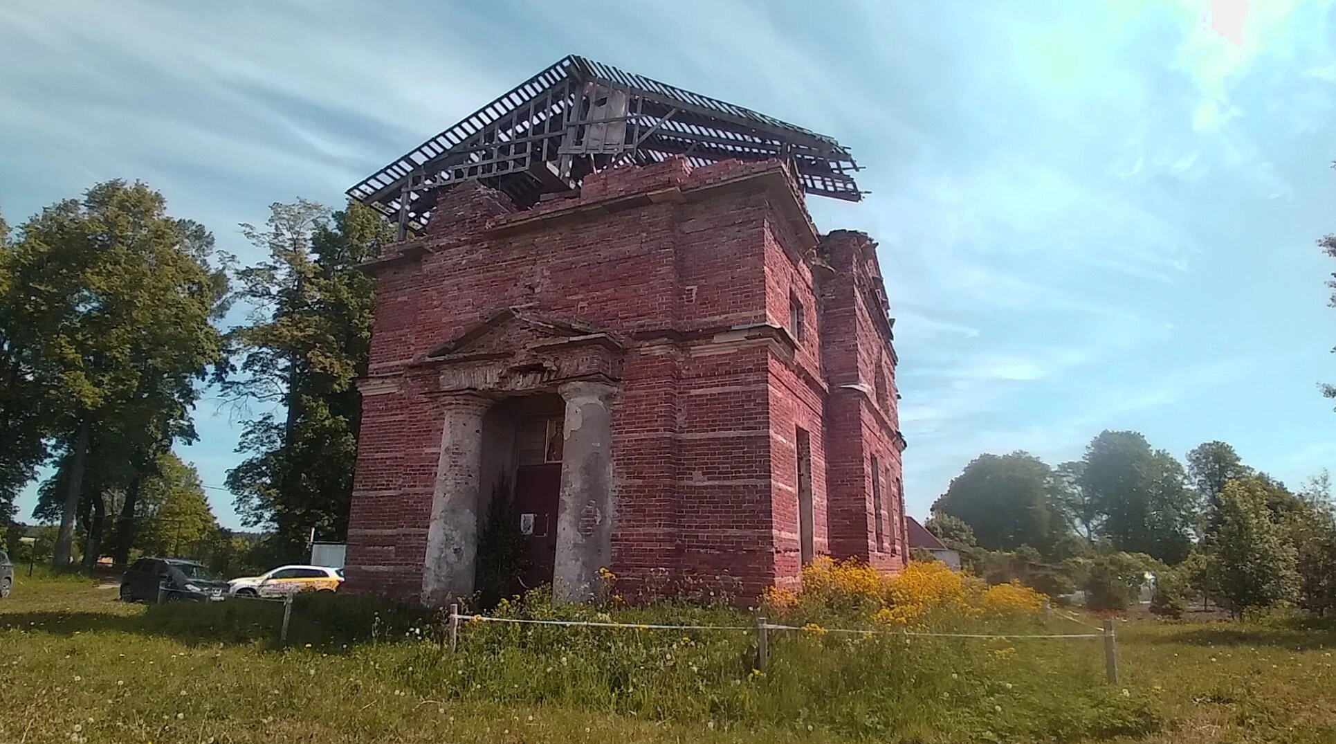 Несмотря на запустение и разруху, храм по-прежнему обладает величественным видом. Его стены, хотя и поросшие местами мхом, всё ещё хранят следы былого благолепия. Окружает сию святыню живописный зелёный луг, весной и летом покрывающийся множеством жёлтых цветов, что символично создаёт образ нимба вокруг пострадавшего за веру сооружения. На заднем плане виднеется опушка леса и современные автомобили, что лишь подчёркивает многовековую разницу эпох и печальное забвение, в котором пребывает сия святыня.