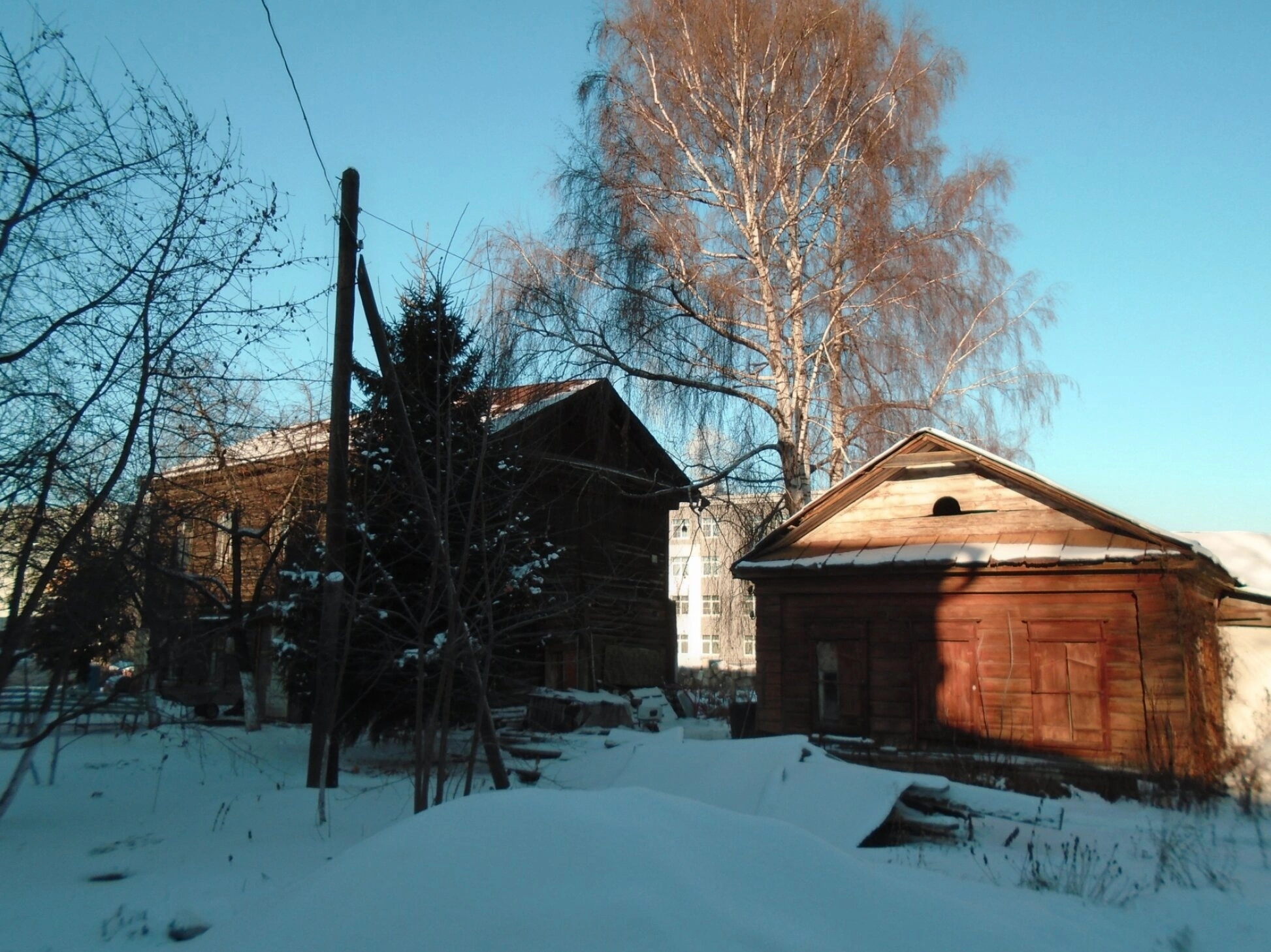 На представленной фотографии запечатлена Церковь Святой Великомученицы Варвары, расположенная в городе Казани. Святыня предстаёт перед зрителем в зимнем убранстве, когда снежное покрывало окутывает землю и кровлю храма. Деревянные строения, видимые на переднем плане, создают особую атмосферу духовного уединения и традиционного русского зодчества.