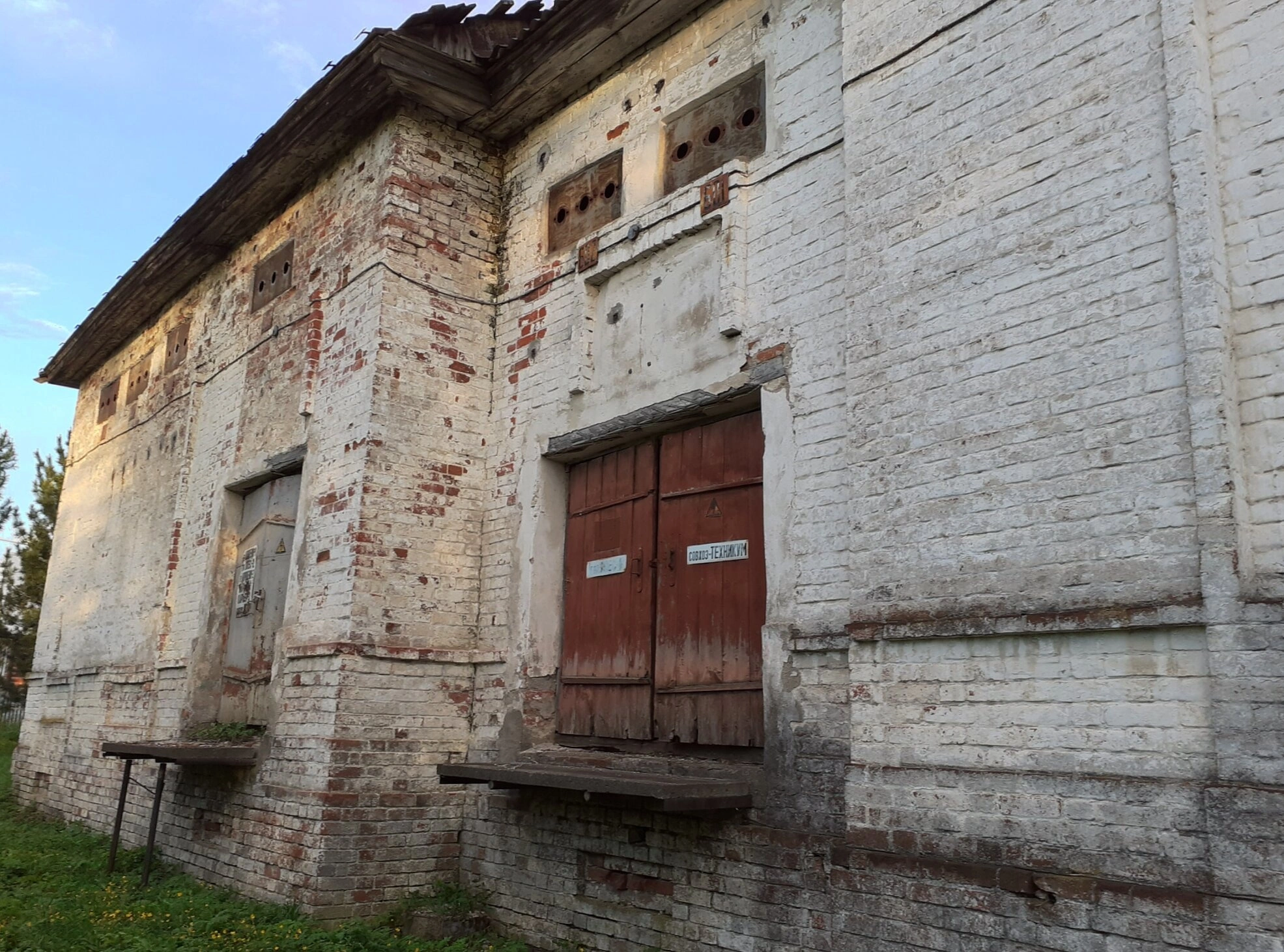 Здание церкви, выполненное из кирпича, представляет собой образец традиционного русского церковного зодчества. Несмотря на следы времени, читаемые в облупившейся штукатурке, строение сохраняет величественный и благодатный вид. Массивные деревянные двери, видные на снимке, ведут в священное пространство храма, где на протяжении столетий возносились молитвы ко Господу.