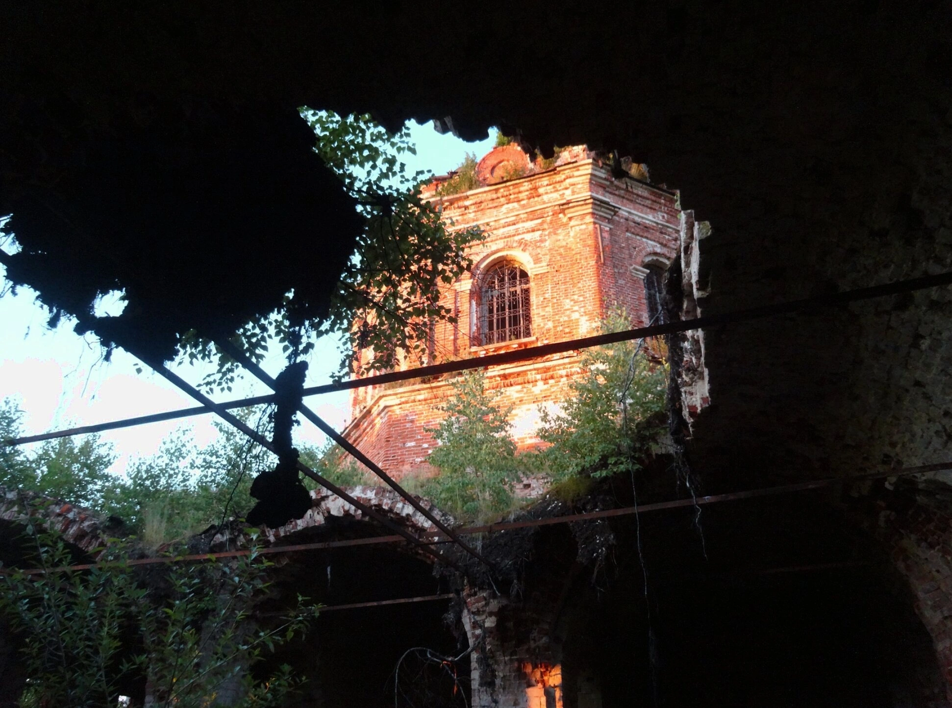 Храм был возведён в конце XIX века и являлся духовным центром для жителей окрестных деревень. Ныне он пребывает в состоянии разрушения, но даже в руинах сохраняет величие и особую благодатную атмосферу, напоминая о непреходящей духовной силе православной веры. Данный образ является ярким свидетельством истории и призывает к сохранению культурного и духовного наследия России.