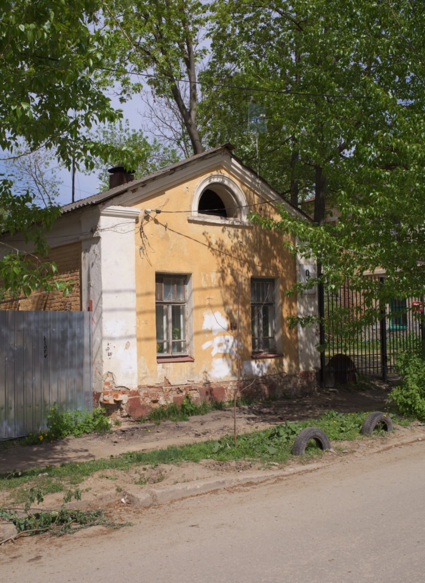 Фасад храма окрашен в желтый цвет, однако время оставило на нем следы разрушения, что придает сооружению особый исторический шарм. Двускатная крыша из профнастила венчает церковное здание, а на фронтоне расположено изящное арочное окно, характерное для церковного зодчества.