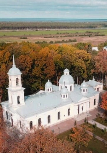На представленной фотографии запечатлена Церковь Тихвинской иконы Божией Матери, расположенная в старинном селе Путилово Кировского района Ленинградской области. Этот каменный пятиглавый храм является выдающимся памятником русской церковной архитектуры и духовным центром всего surroundingго края.