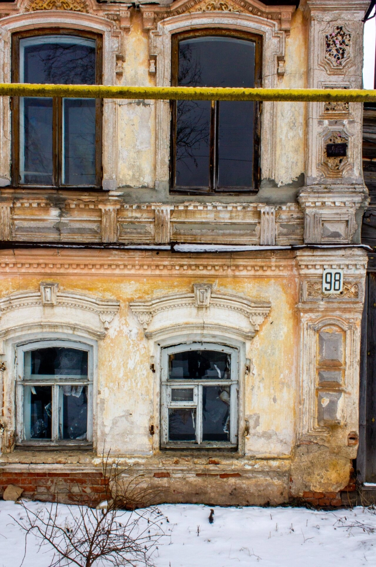 На представленной фотографии запечатлена Церковь Троицы Живоначальной, расположенная в посёлке Большое Мурашкино Нижегородской области. Свято-Троицкий храм представляет собой двухэтажное каменное здание, выполненное в традициях русской церковной архитектуры. Фасад сооружения украшен изящной лепниной вокруг оконных проёмов и между этажами, что свидетельствует о высоком мастерстве строителей.