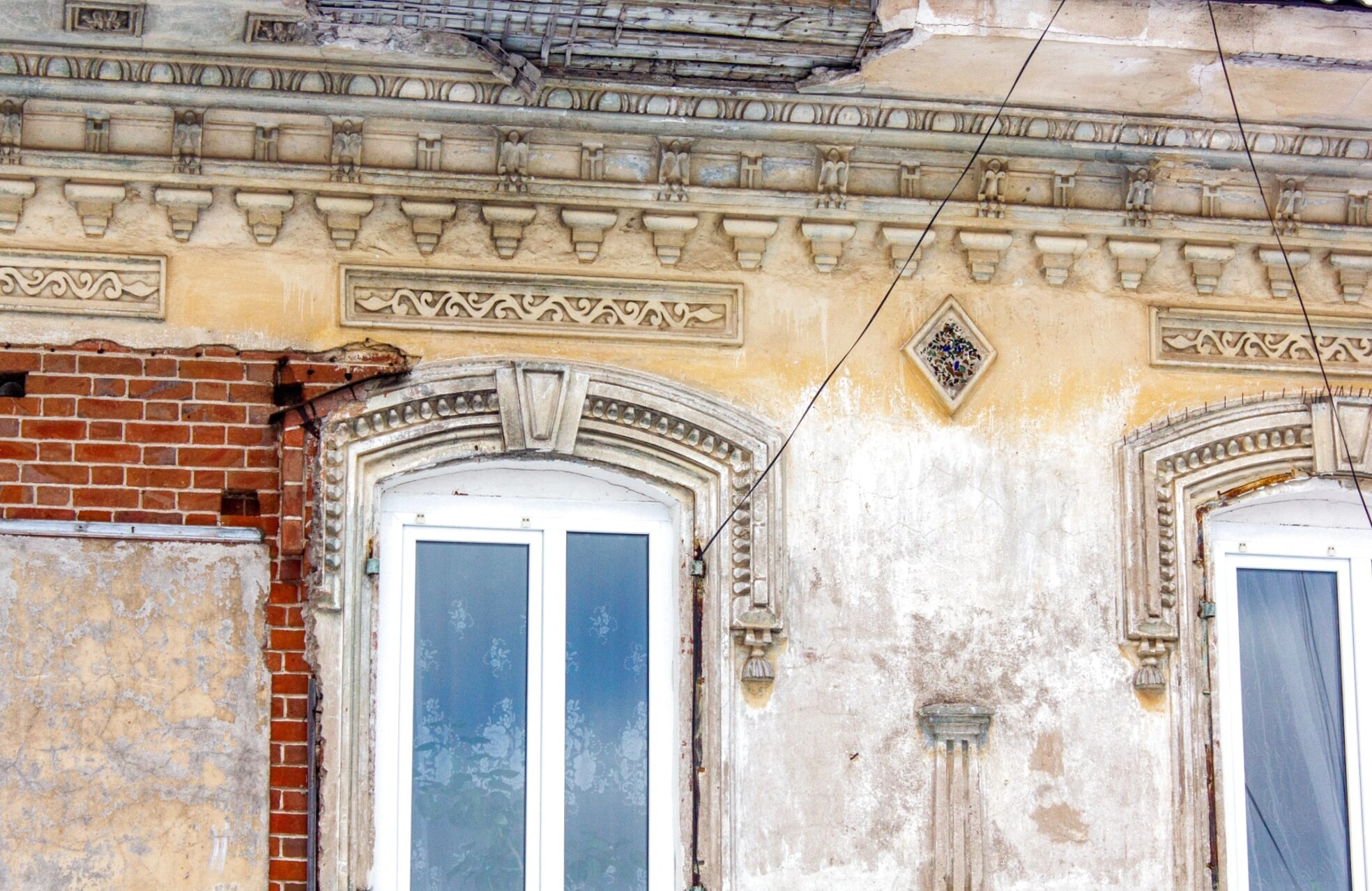 Фотография демонстрирует характерные элементы церковной архитектуры, включая арочные оконные проемы, декоративные наличники и лепной орнамент, украшающий фасад здания. Сохранившиеся архитектурные детали свидетельствуют о мастерстве русских зодчих, создававших этот духовный центр.