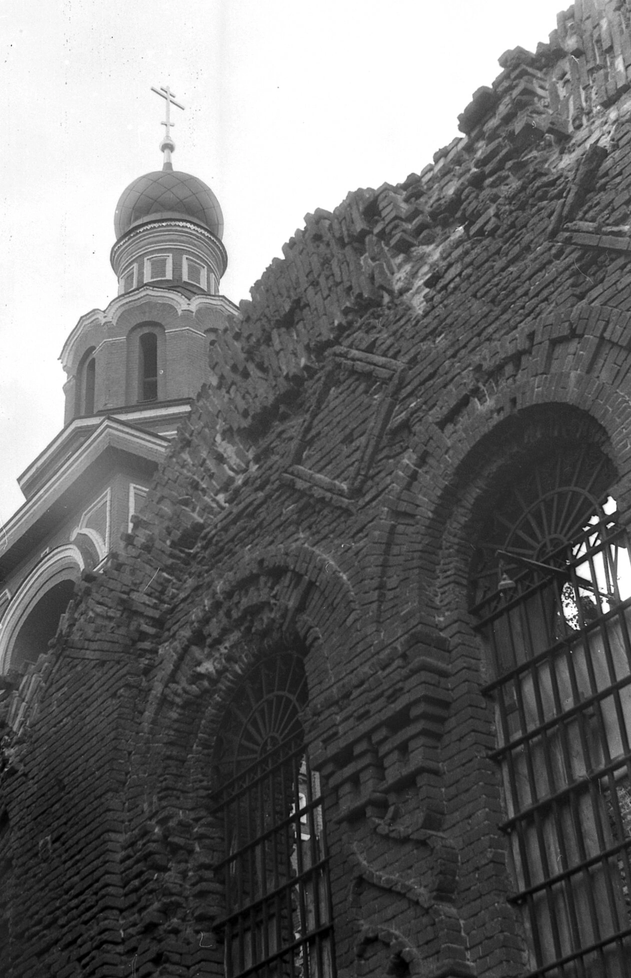 Исторические источники свидетельствуют, что храм был основан в 1897 году, а в 1937 году был закрыт и подвергся разрушению. Долгие десятилетия церковь пребывала в запустении, и лишь в 1990-х годах начались работы по ее восстановлению. Данная фотография является ценным историческим документом, позволяющим оценить состояние храма до начала реставрационных работ.