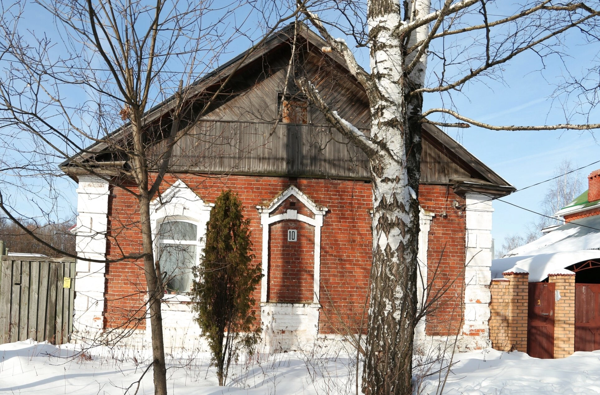 Одноэтажное кирпичное здание храма с деревянным фронтоном демонстрирует характерные черты церковной архитектуры. На фасаде сооружения чётко видна табличка с номером 10, указывающая на точное местонахождение святого места. Архитектурный облик храма отражает традиции православного зодчества, сохраняя благоговейную простоту и строгость форм.