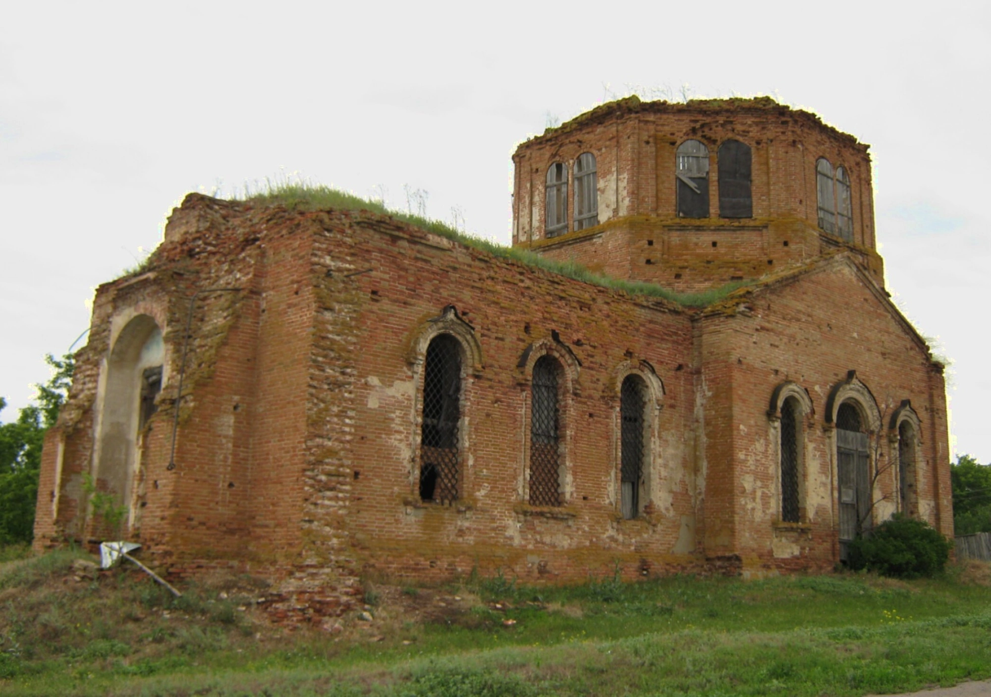 На представленной фотографии запечатлена Церковь Троицы Живоначальной, расположенная в селе Криница Воронежской области. Этот православный храм, ныне пребывающий в полуразрушенном состоянии, является немым свидетелем истории и былого величия русского церковного зодчества.