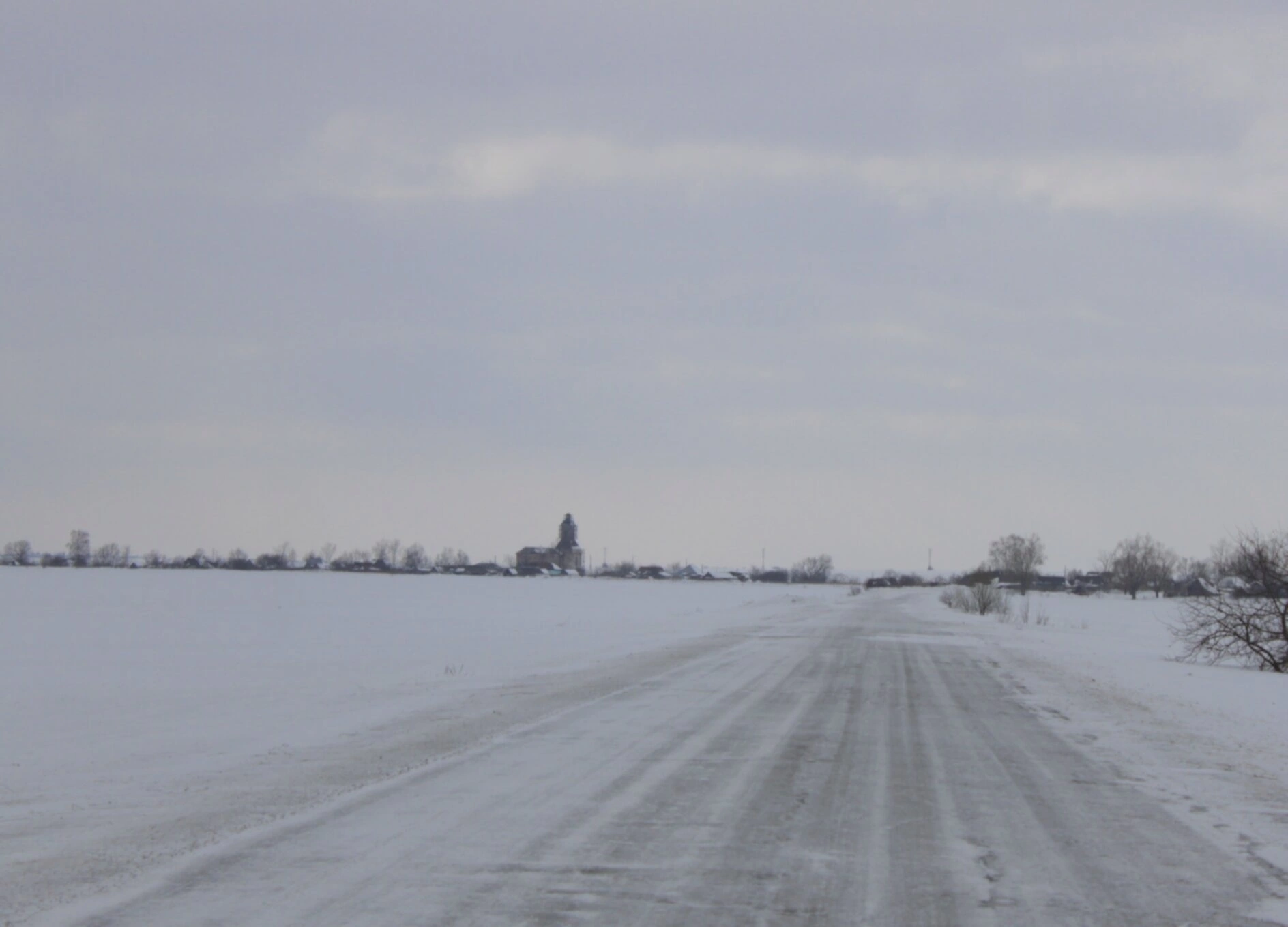 Зимний пейзаж придает фотографии особое настроение. Земля укрыта снежным покровом, деревья и кустарники по сторонам дороги склонились под тяжестью снега. Заснеженная дорога, ведущая к храму, с прочерченными следами автомобильных шин создает ощущение присутствия и движения. Небо затянуто серыми облаками, что характерно для зимнего дня в средней полосе России.