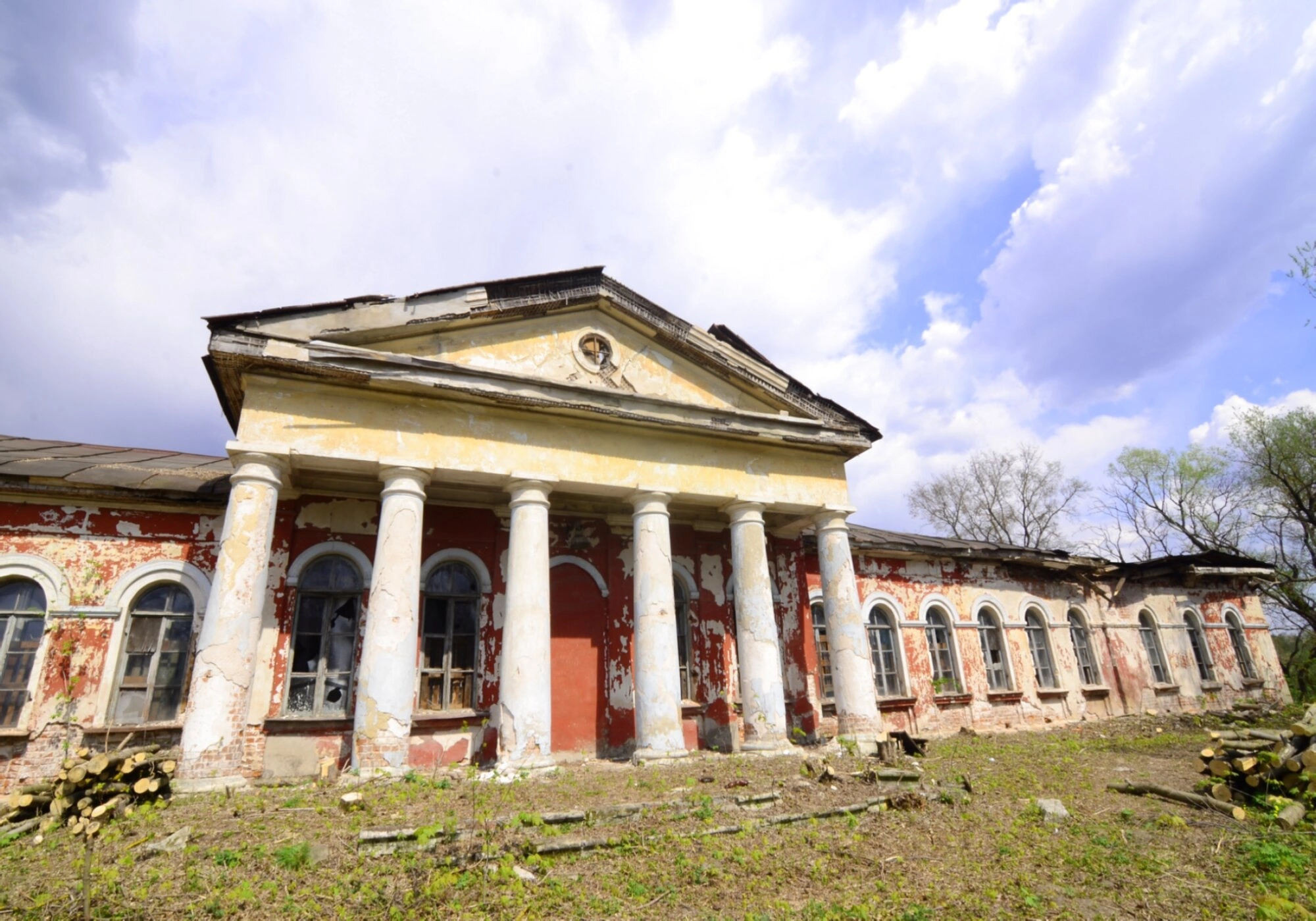Храмовой комплекс являет собой прекрасный образец церковной архитектуры, выполненный в стиле ампир с элементами классицизма. Главный фасад украшает величественный шестиколонный портик тосканского ордера, увенчанный треугольным фронтоном, что символизирует устремлённость верующих к горнему миру. Белоснежные стены храма гармонично сочетаются с зелёными кровлями, создавая образ духовной чистоты и благолепия.