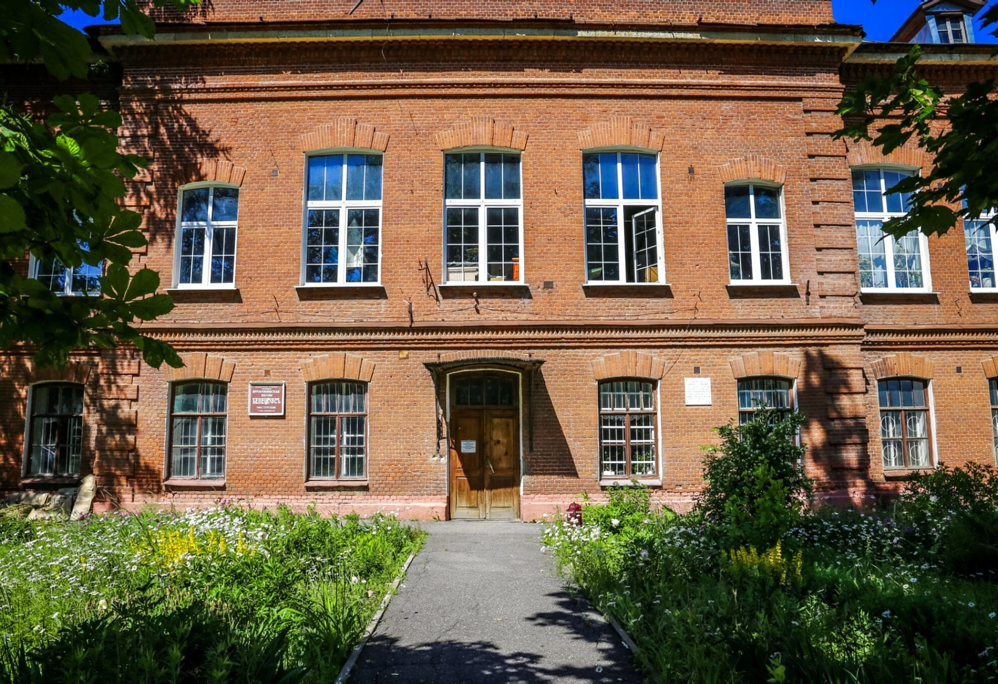 Главный вход в церковь оформлен скромным, но изящным порталом с деревянной дверью, ведущей в святилище. Перед храмом расположена благоустроенная территория с мощёной дорожкой, окружённая ухоженной растительностью и цветущими насаждениями, что создаёт особую молитвенную атмосферу и гармоничный архитектурно-ландшафтный ансамбль.