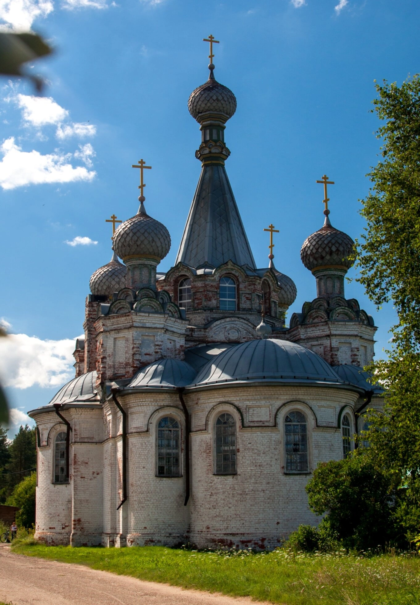 На представленной фотографии запечатлена Церковь Успения Пресвятой Богородицы, расположенная в селе Густомесово Любимского района Ярославской области. Этот православный храм является памятником архитектуры и объектом культурного наследия, воплощающим в себе традиции русского церковного зодчества.