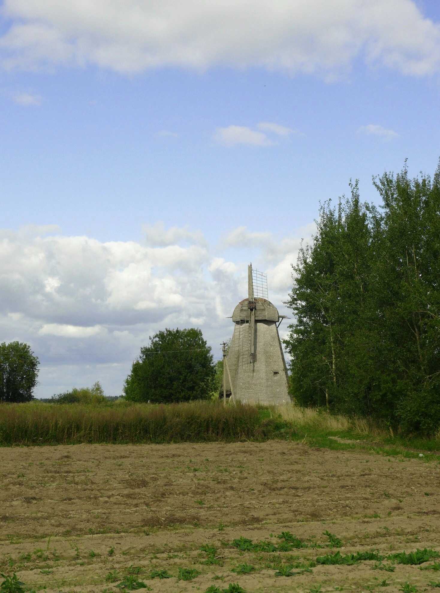 На переднем плане фотографии видно вспаханное поле, что подчеркивает сельское расположение святого места. Окружающий пейзаж с высокими деревьями и густой растительностью создает ощущение уединенности и покоя, столь характерное для многих православных обителей Русского Севера.