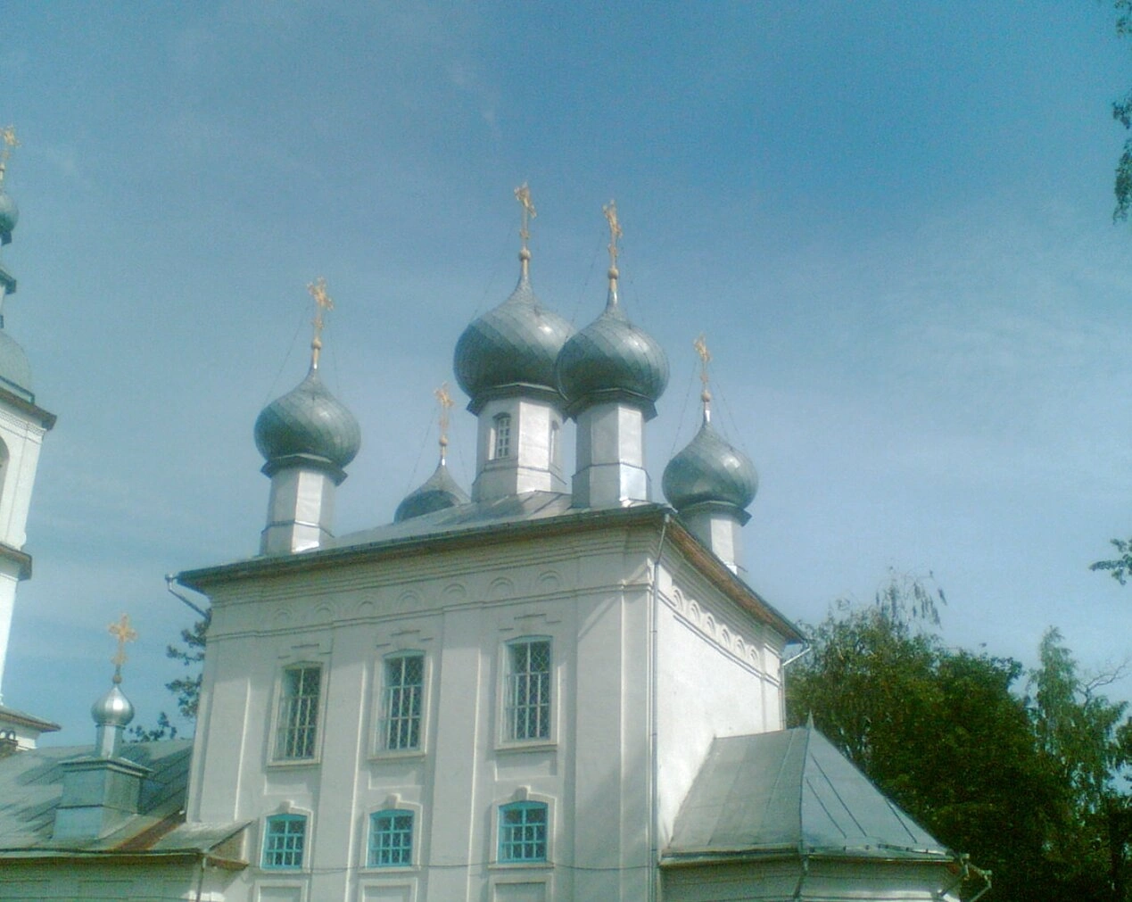 На представленной фотографии запечатлена Церковь Успения Пресвятой Богородицы, расположенная в селе Чернецкое Московской области, известном также под историческим названием Скородумка. Храм находится в живописной местности Вологодской области, что подтверждается географическими координатами, указывающими на расположение в северном регионе России.