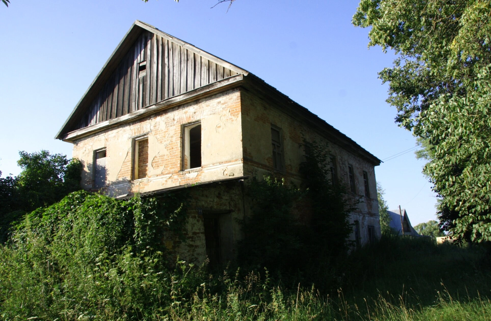 Здание церкви выполнено из красного кирпича и демонстрирует характерные черты русского храмового зодчества. На фотографии видно, что святыня находится в полуразрушенном состоянии, что свидетельствует о сложной исторической судьбе данного духовного центра. Несмотря на повреждения, в архитектурных формах угадывается первоначальное благолепие дома Божия.