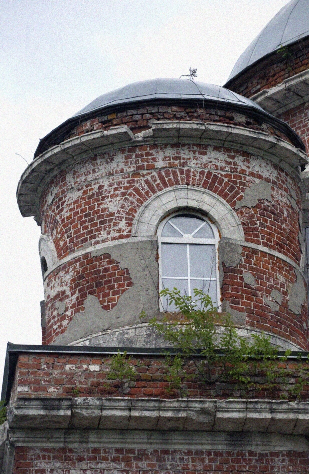 Кирпичная кладка, составляющая основу сооружения, местами сохранила следы оштукатуренной поверхности. К сожалению, здание пребывает в ветхом состоянии: визуально наблюдаются значительные разрушения кирпичной массы и повсеместное отслоение штукатурного покрытия. Особого внимания заслуживает арочное оконное проемное отверстие, в котором установлена современная пластиковая рама, что создает определенный диссонанс с историческим обликом святыни.