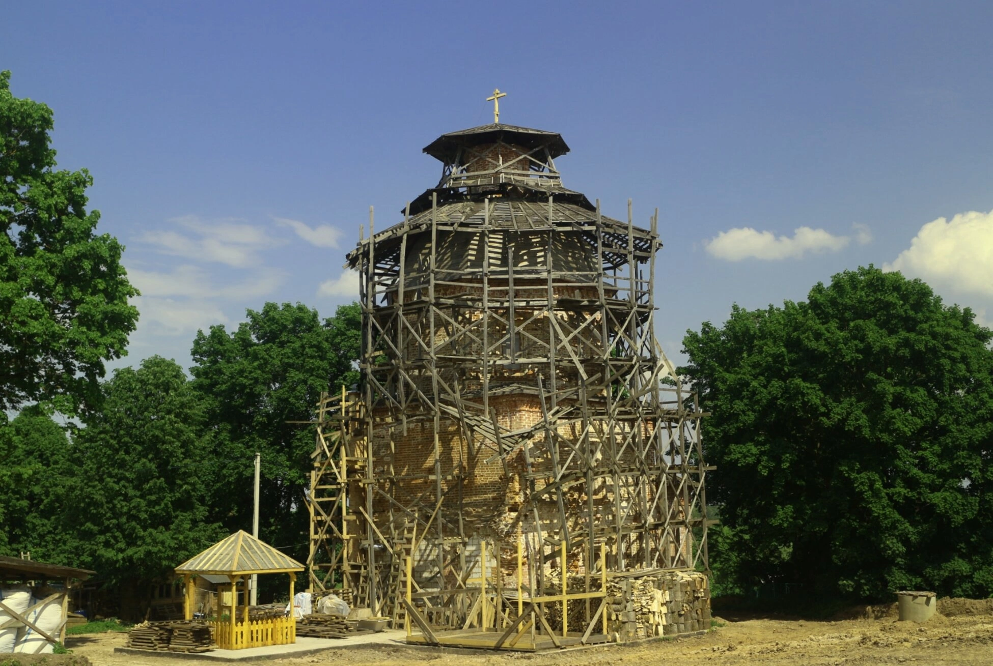 Строительство существующего каменного храма началось в 1898 году и продолжалось до 1917 года. Это была крупная трехпрестольная церковь с главным престолом в честь Успения Пресвятой Богородицы и приделами во имя святого Архистратига Михаила и Вознесения Господня. Освящение храма состоялось лишь в 1927 году, а уже в 1932 году он был закрыт. В послереволюционные годы храм постигла участь многих святынь — он был предан забвению и постепенно разрушался.