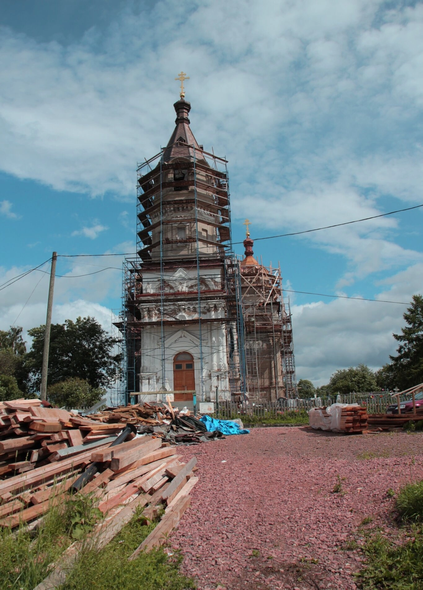 Проводимые работы направлены на восстановление первоначального облика здания и обеспечение его сохранности для будущих поколений. Реставрация подобных объектов имеет особое значение, позволяя поддерживать многовековые традиции православного зодчества. Фотография служит ценным документом, фиксирующим этот этап в жизни храма.