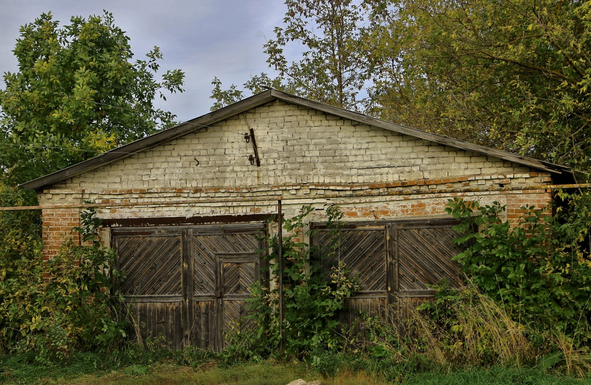 Архитектура храма характерна для русских церковных построек позднего классицизма. На фотографии видна кирпичная кладка стен, сохранившаяся несмотря на признаки временного запустения. Двускатная кровля и строгие формы здания свидетельствуют о традициях православного храмостроительства. Состояние сооружения на снимке отражает сложную историю храма в советский период, когда многие святыни были заброшены.