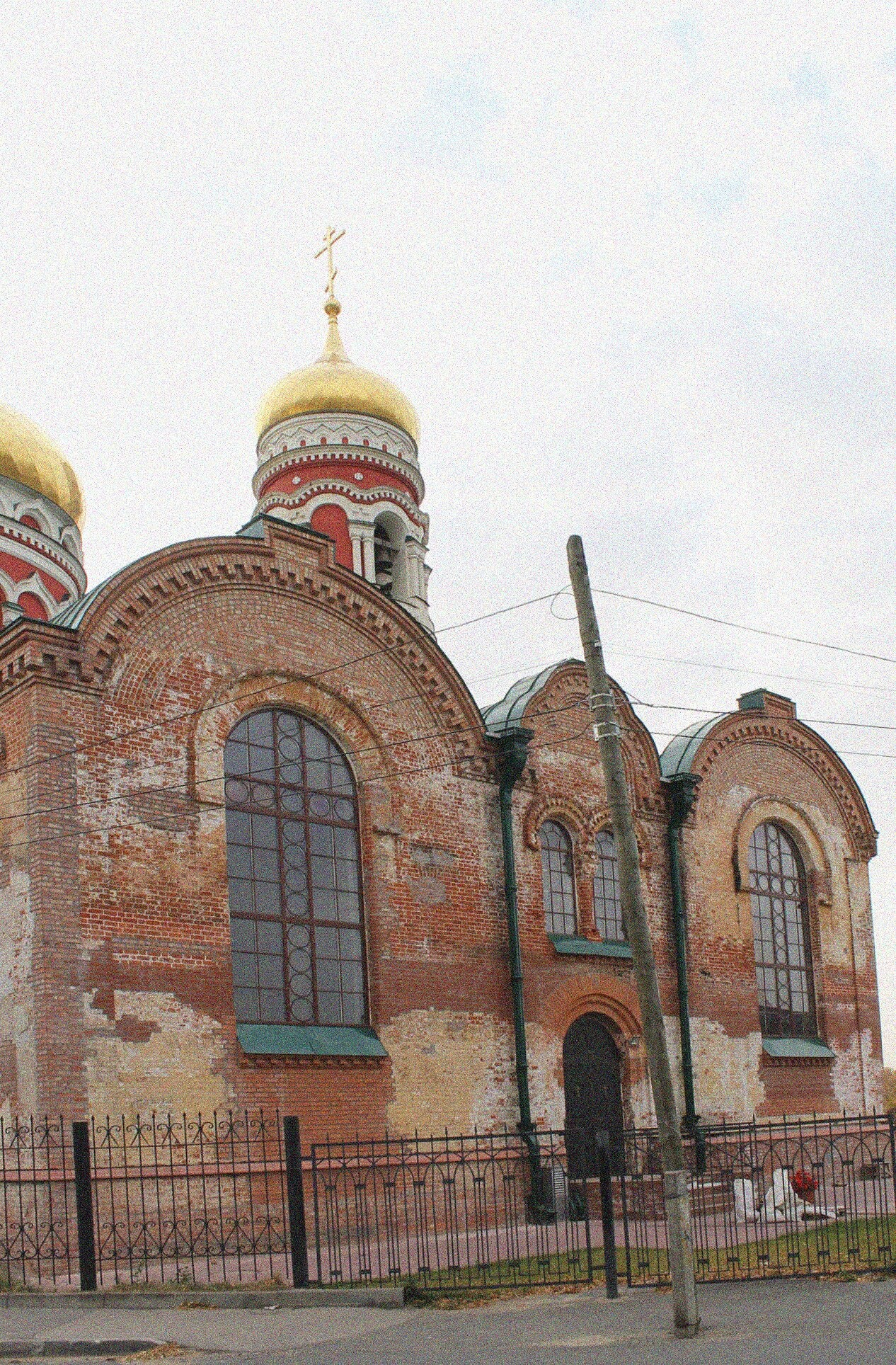 На фотографии запечатлён старинный православный храм — Церковь Воскресения Христова, расположенная на улице Шевченко в Нижнем Новгороде. Величественное здание является ярким образцом русской церковной архитектуры конца XIX века.