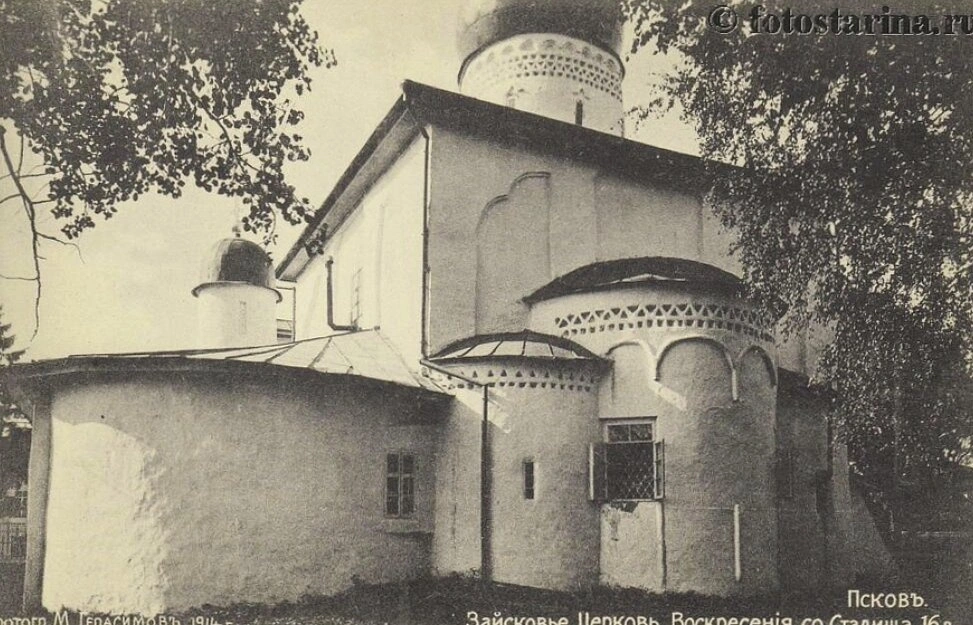 - Церковь Воскресения Христова со Стадища в Пскове на исторической фотографии 1914 года