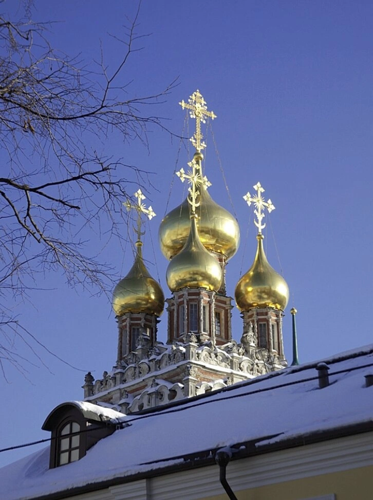 В ясный зимний день солнечные лучи мягко освещают золочёные кресты и детали декора, создавая особую атмосферу благоговения. Отсутствие людей на снимке позволяет в полной мере оценить архитектурное совершенство этого духовного центра Замоскворечья. Храм продолжает действовать и сегодня, являясь не только памятником архитектуры, но и местом молитвенного предстояния верующих.