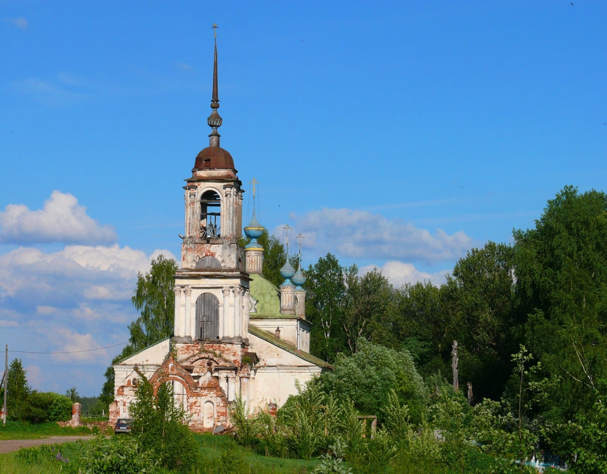 При внимательном рассмотрении фотографии становится очевидно, что святыня пребывает в состоянии благоговейного запустения. Стены храма, сложенные из добротного кирпича, сохранили свою прочность, однако кровля и внутренние помещения требуют внимания и заботы верующих. Такое состояние многих российских храмов напоминает нам о сложных периодах в истории Отечества и необходимости сохранения духовного наследия.