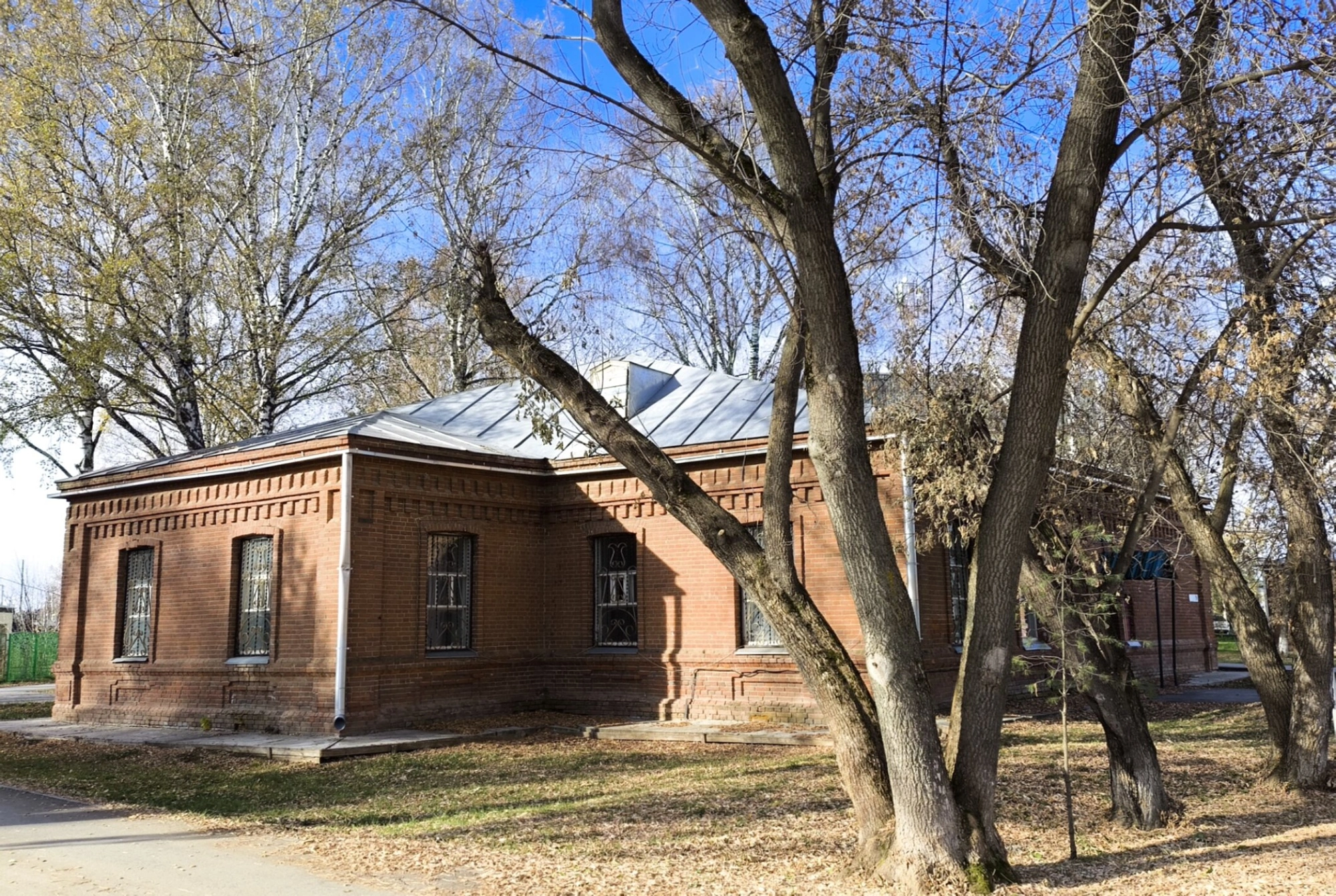 На снимке зафиксирован осенний период — деревья, окружающие церковь, покрыты редкой листвой, а земля усеяна опавшими листьями. Это создаёт особую атмосферу умиротворения и покоя, позволяя оценить гармоничное сочетание творения рук человеческих и природного ландшафта.