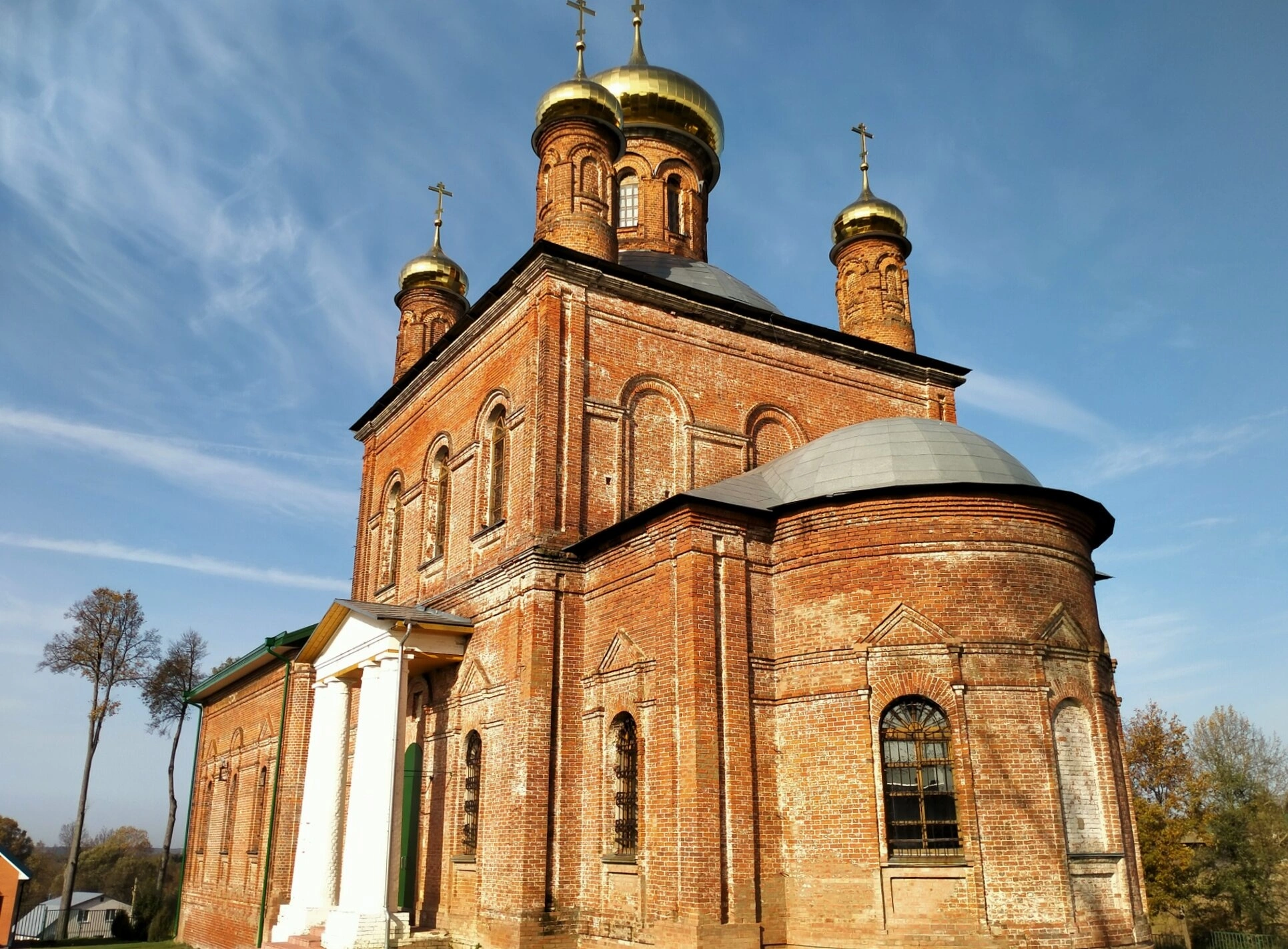 На снимке заметны следы времени на кирпичной кладке и куполах, некоторые оконные проёмы требуют реставрации, однако整体 храм сохраняет своё величественное звучание. Отсутствие людей на фотографии позволяет в полной мере сосредоточиться на архитектурных достоинствах этого духовного памятника, являющегося объектом культурного наследия Сергиево-Посадского района.