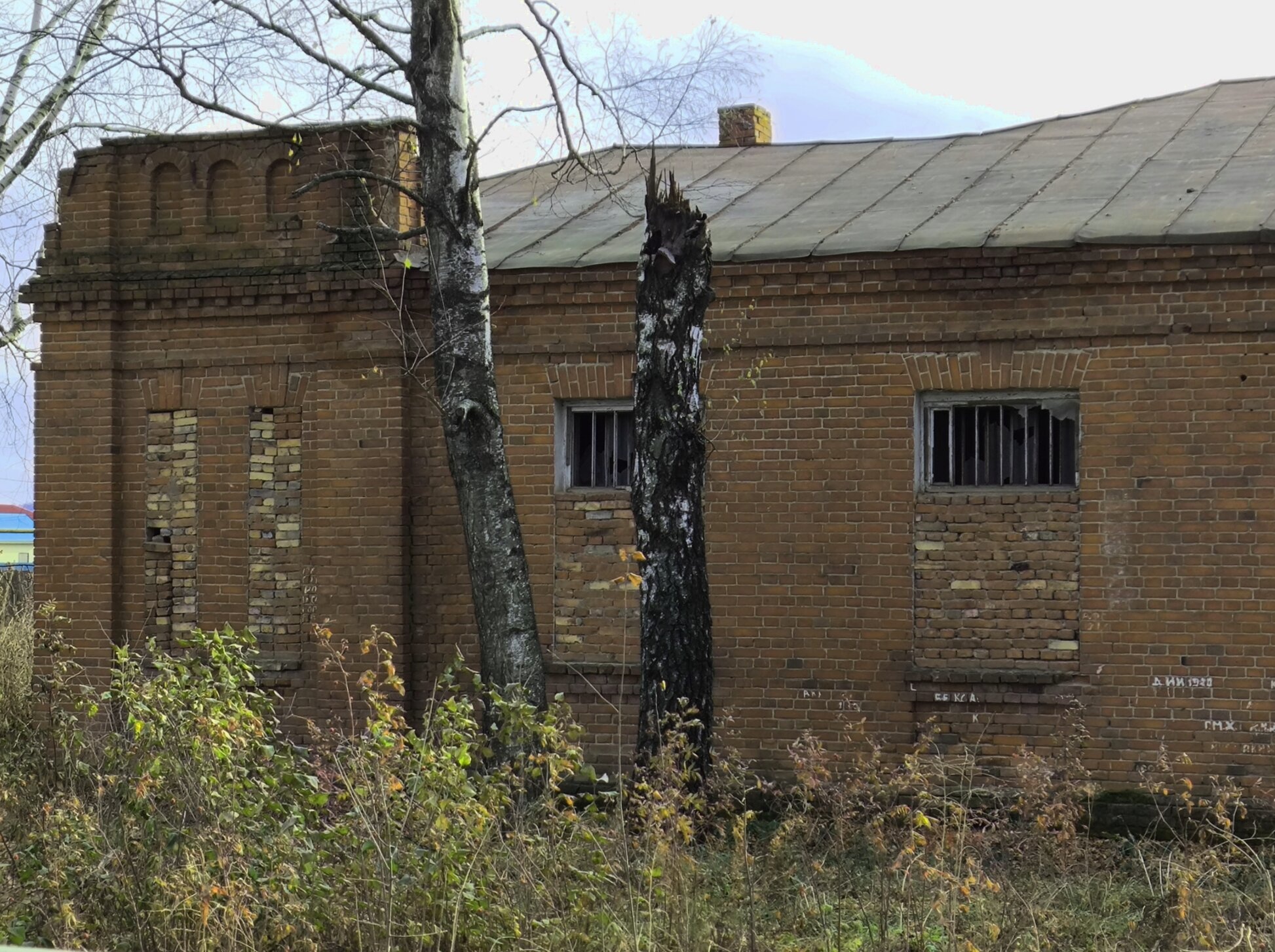 Особого внимания заслуживают оконные проемы, в которых угадываются черты церковной архитектуры. Два окна, оборудованные металлическими решетками, частично заложены кирпичом, что характерно для периода борьбы с религией и последующих лет забвения. На кирпичной кладке в нижней части стены просматриваются надписи, сделанные краской, что свидетельствует о недостаточном охранном статусе объекта культурного наследия.