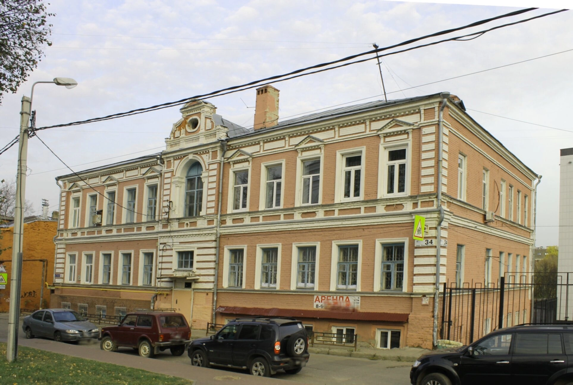 На представленной фотографии запечатлено историческое здание, расположенное в переулке Плотничном, дом 34, в Нижнем Новгороде. Ныне в этих стенах располагается храм в честь Вознесения Господня, что на Ильинке. Здание является ярким образцом церковной архитектуры периода эклектики, для которого характерно гармоничное сочетание различных стилистических элементов.