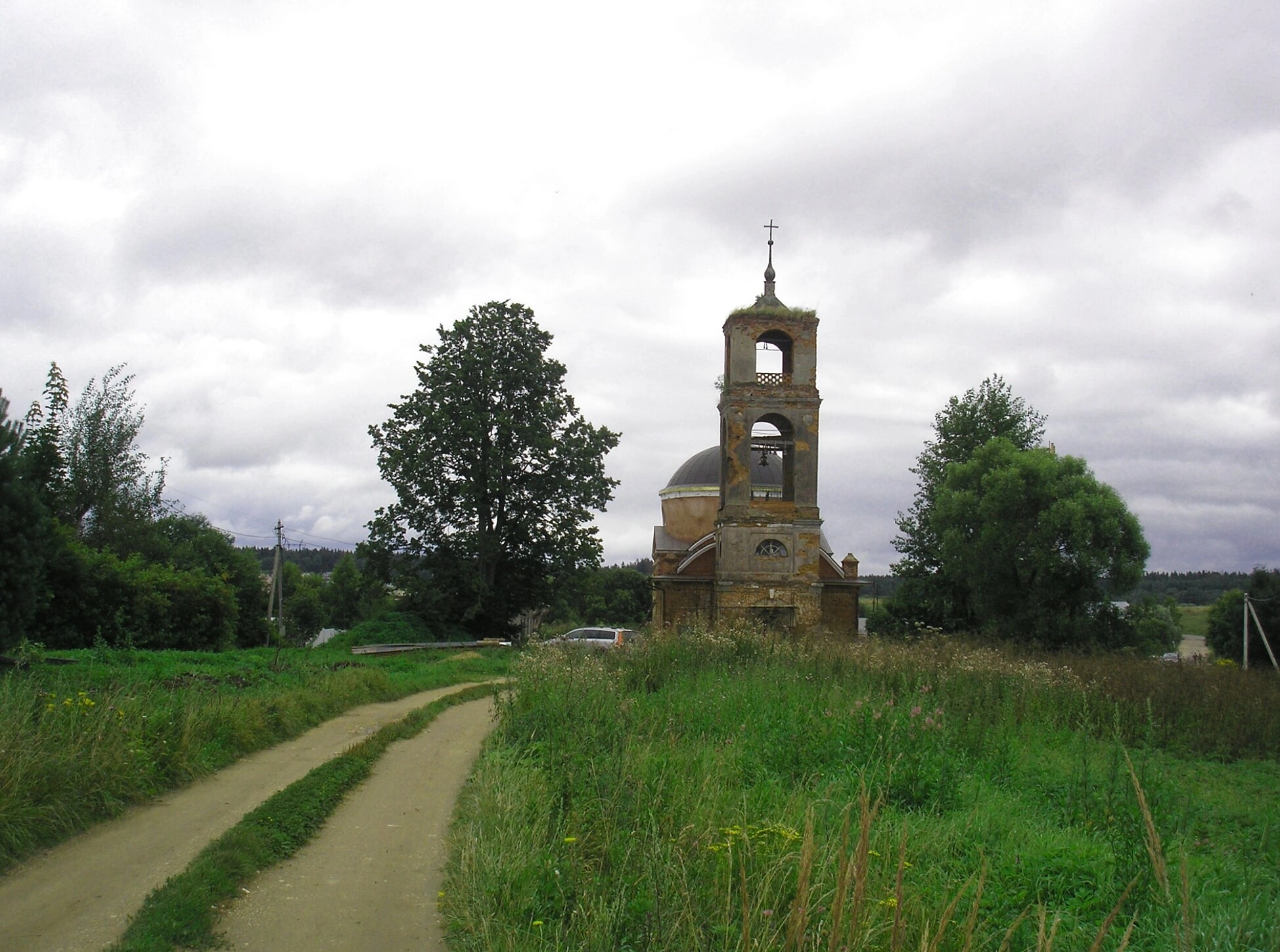 Окружающий пейзаж дополняет печальную картину: храм стоит посреди заросшей территории, окруженный деревьями, с грунтовой дорогой, ведущей к его стенам. Пасмурное небо, характерное для средней полосы России, усиливает ощущение утраты и забвения этой некогда благодатной святыни.