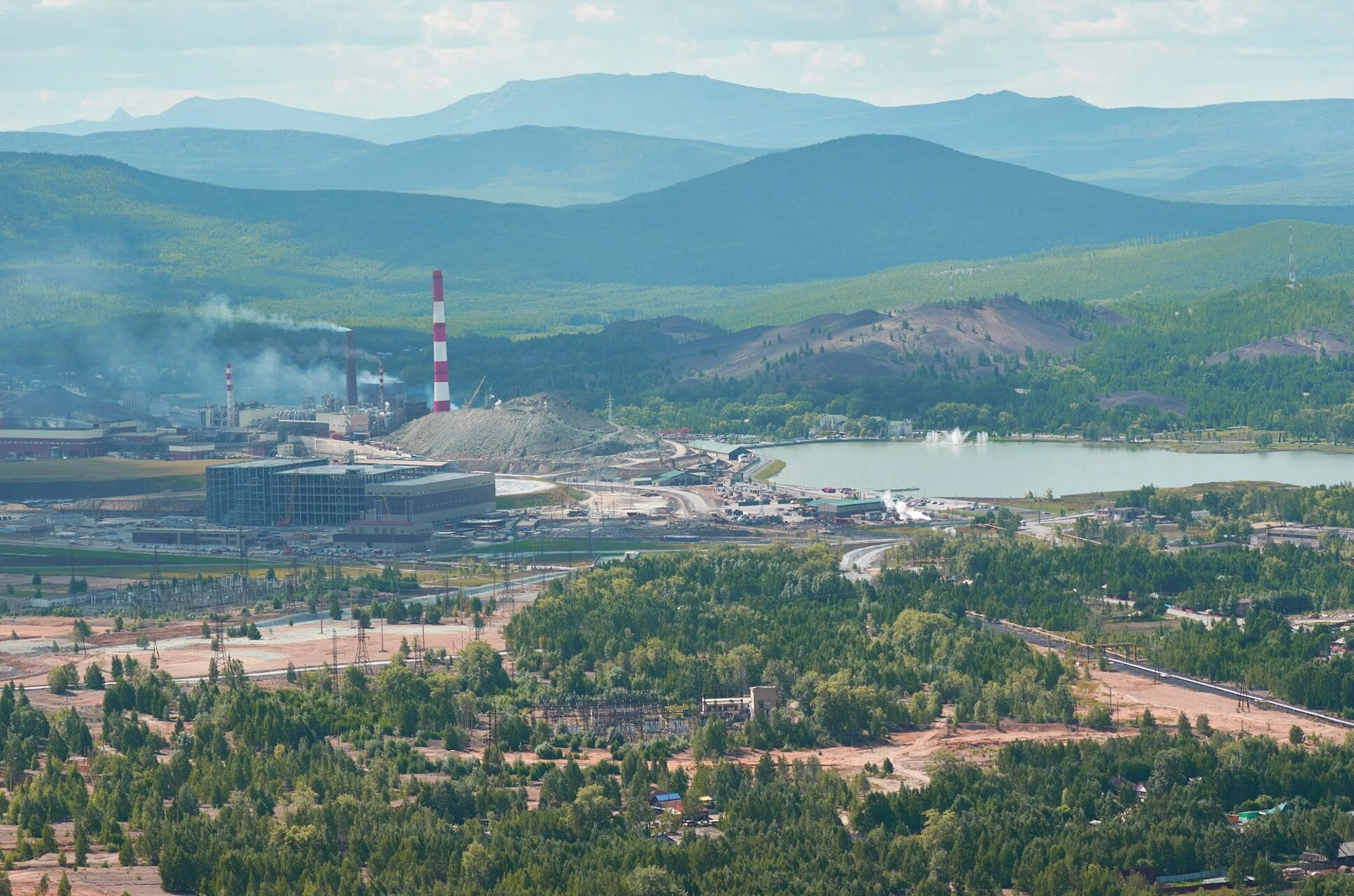 На переднем плане фотографии видна лесистая местность, окружающая святую обитель, что подчеркивает уединенность и благодатность этого места для молитвенного подвига. Вдали виднеется горный хребет, создающий величественный природный образ, напоминающий о творческой силе Творца. Водоём у стен храма отражает небесную лазурь и святые купола, символизируя очищение и благодать, ниспосылаемую всем приходящим в этот дом Божий.