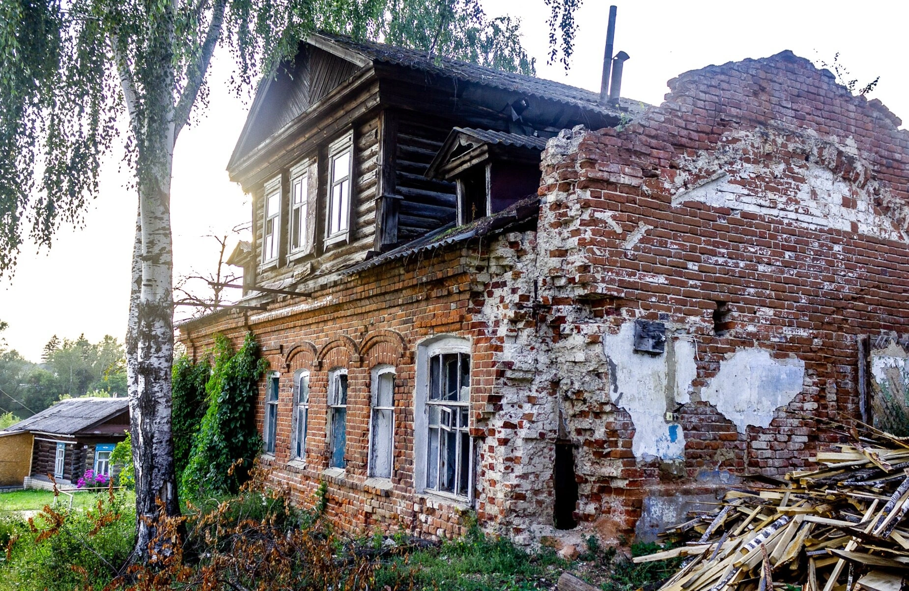 На представленной фотографии запечатлена Церковь Вознесения Господня, расположенная в селе Цыкино Нижегородской области. Этот православный храм представляет собой уникальный памятник церковной архитектуры, находящийся в настоящее время в полуразрушенном состоянии.