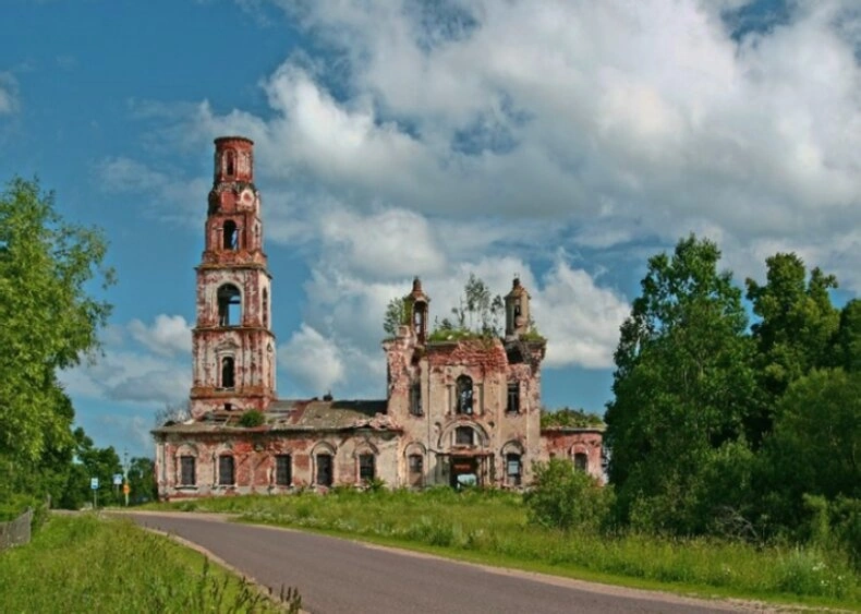 На представленной фотографии запечатлена Церковь Вознесения Господня, расположенная в селе Теряево Волоколамского района Московской области. Храм находится в полуразрушенном, заброшенном состоянии, что придаёт его образу величие скорби и напоминает о быстротечности земного бытия.