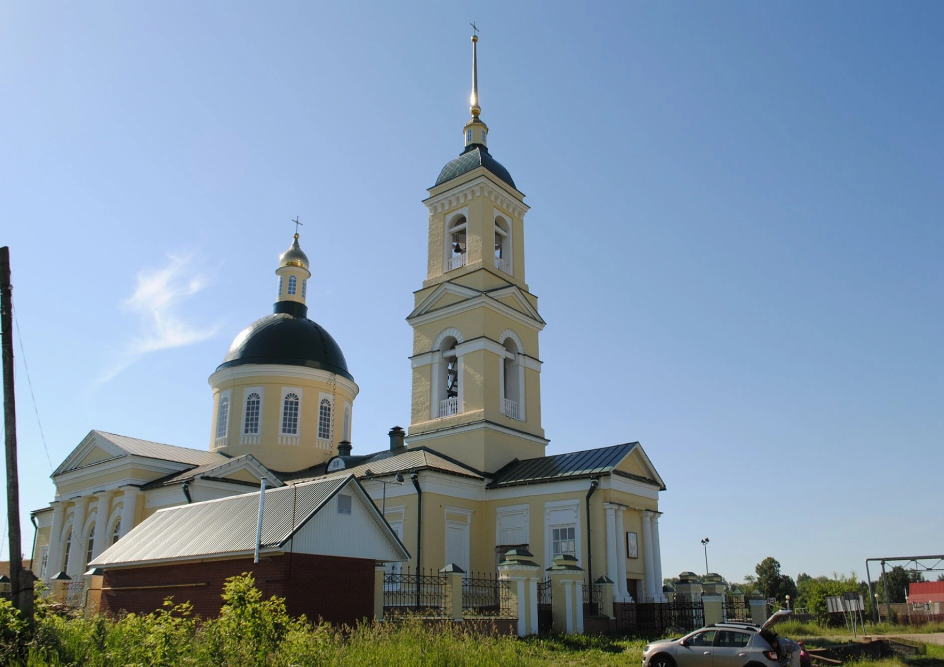 На представленной фотографии запечатлена Церковь Вознесения Господня, расположенная в селе Водзимонье Вавожского района Удмуртской Республики. Храм является выдающимся памятником православной архитектуры и духовным центром для местных жителей.