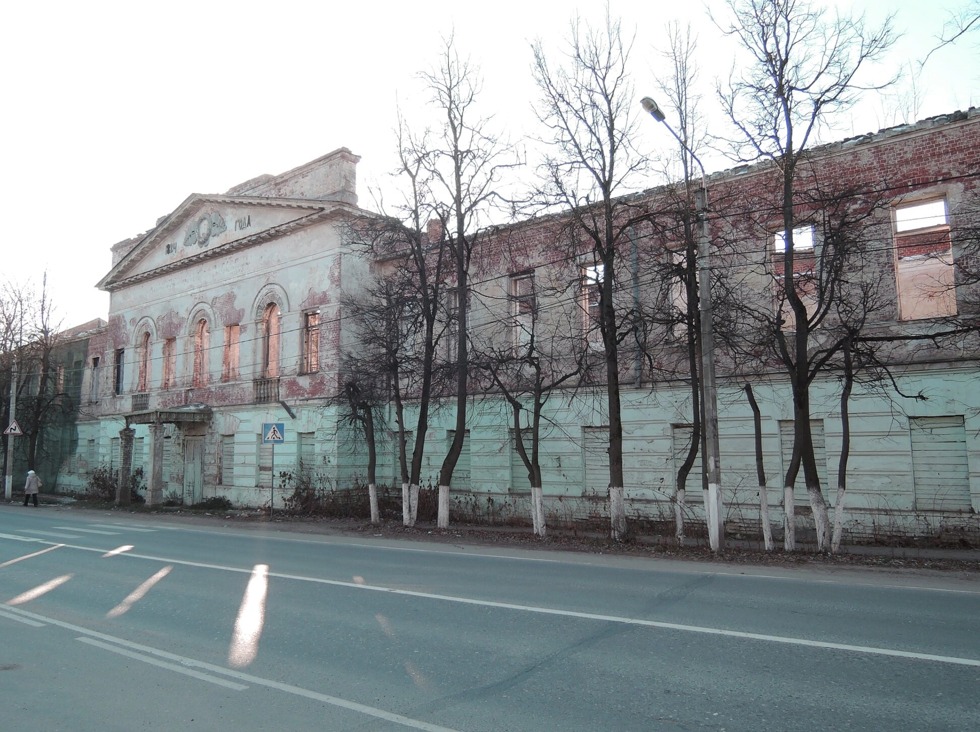 На представленной фотографии запечатлена часть исторической застройки, относящейся к комплексу Церкви Вознесения Господня в городе Сергиев Посад. Этот храм, возведённый в период с 1766 по 1779 год на средства прихожан, является значимым духовным центром и архитектурным памятником в стиле провинциального барокко.
