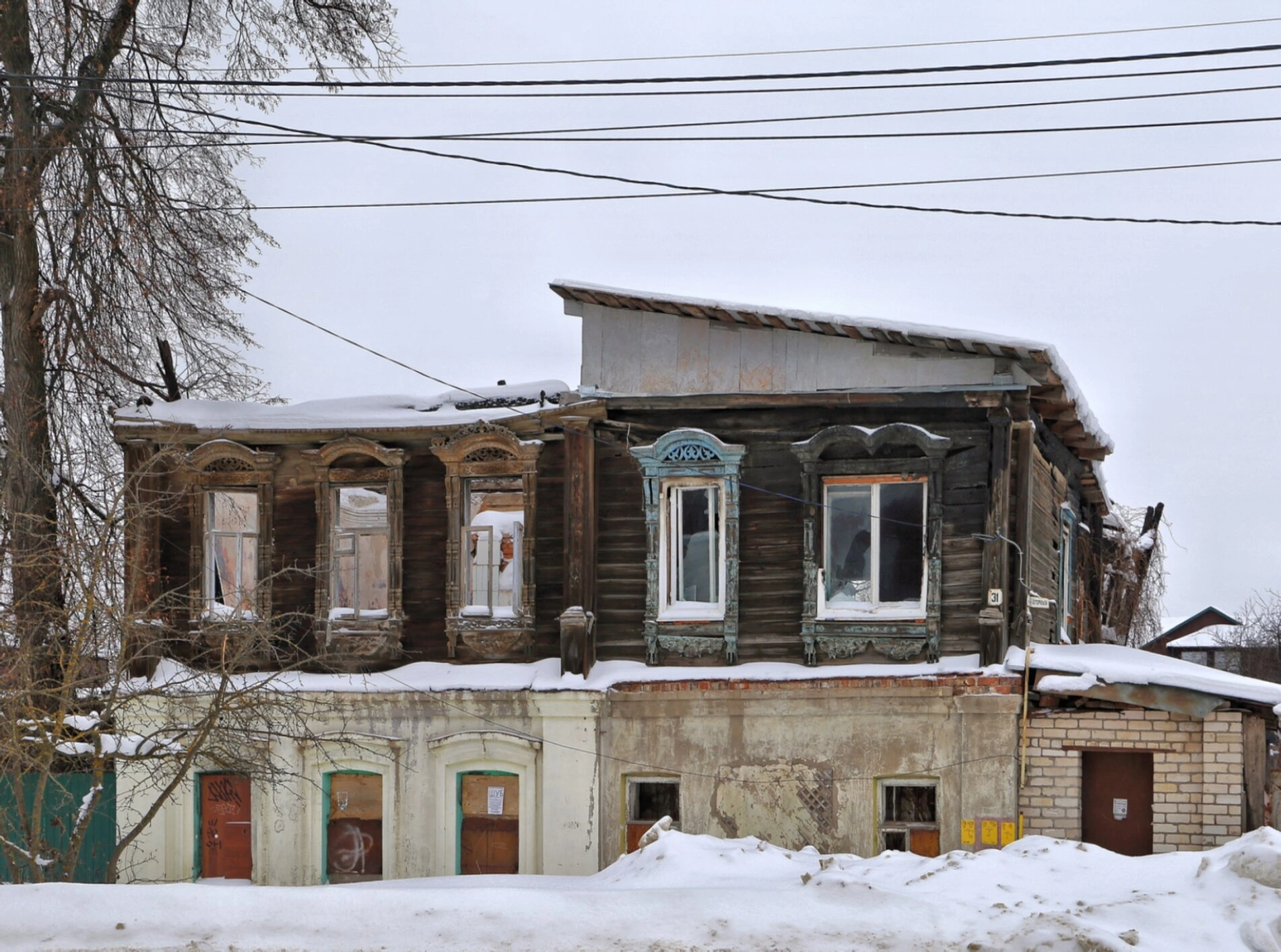 Внешний облик строения свидетельствует о его почтенном возрасте и требует проведения реставрационных работ. На момент съёмки крыша и прилегающая территория покрыты снегом, что создаёт особую атмосферу русской зимы. Архитектурные детали второго деревянного этажа украшены резными наличниками, демонстрирующими мастерство местных умельцев.