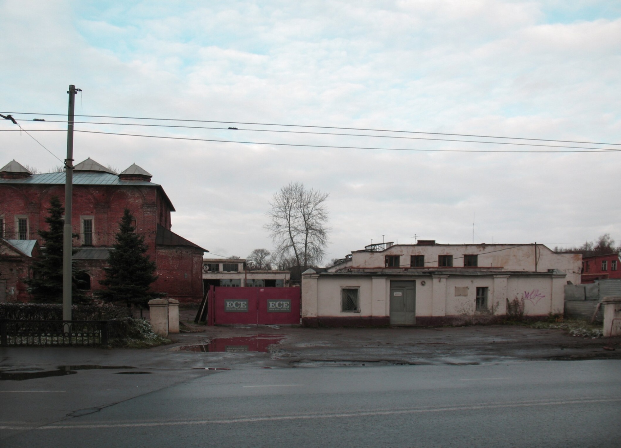 На переднем плане снимка видна одноэтажная светлая постройка, которая, вероятно, является частью церковного владения или строением причта. Центральное место в композиции занимает само здание храма, однако его величественный объём лишь угадывается за другими строениями. Старое кирпичное здание слева и забор создают ощущение уединённости и покоя, свойственного старинным городским уголкам.