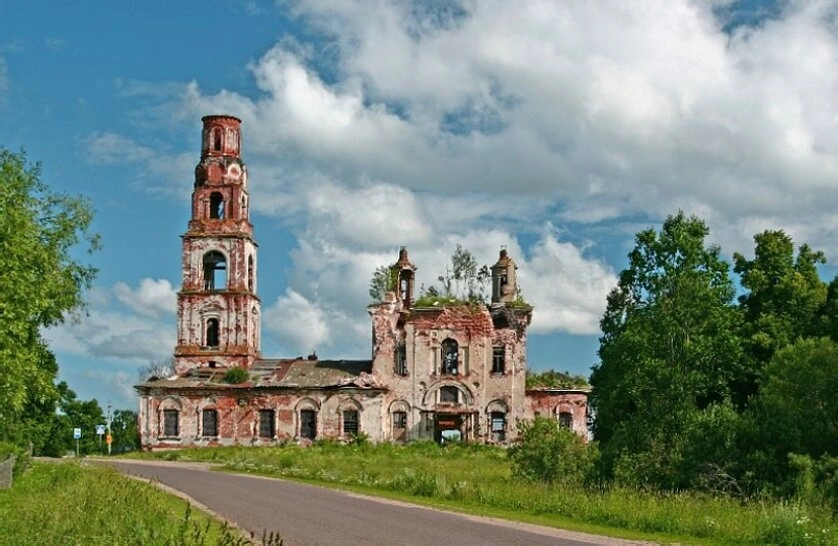 На представленной фотографии запечатлена Церковь Вознесения Господня, расположенная в селе Теряево Волоколамского городского округа Московской области. Ныне храм пребывает в полуразрушенном состоянии, являясь молчаливым свидетелем былой духовной жизни этих мест.