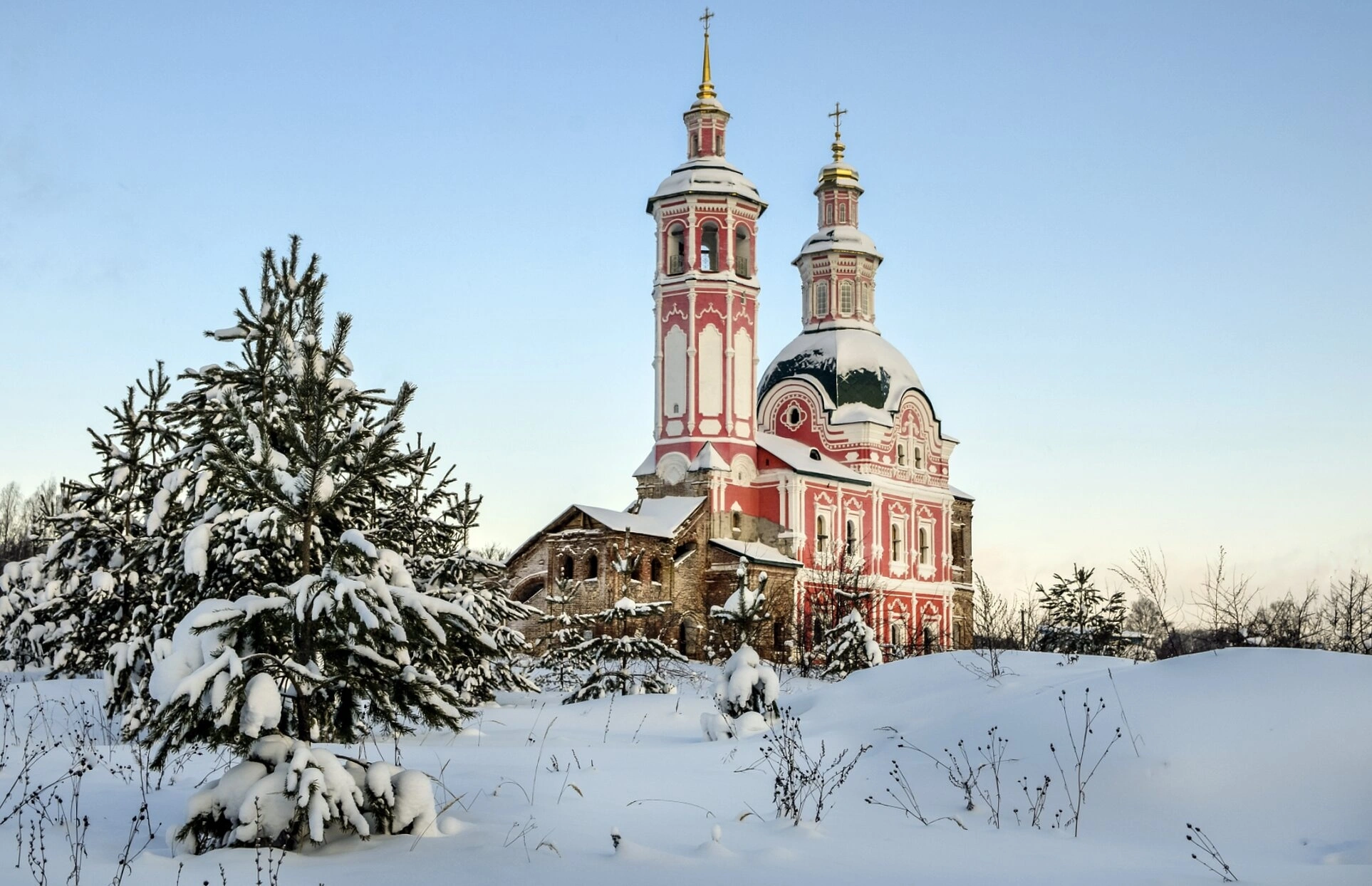 - Церковь Всемилостивого Спаса в селе Вяз зимой