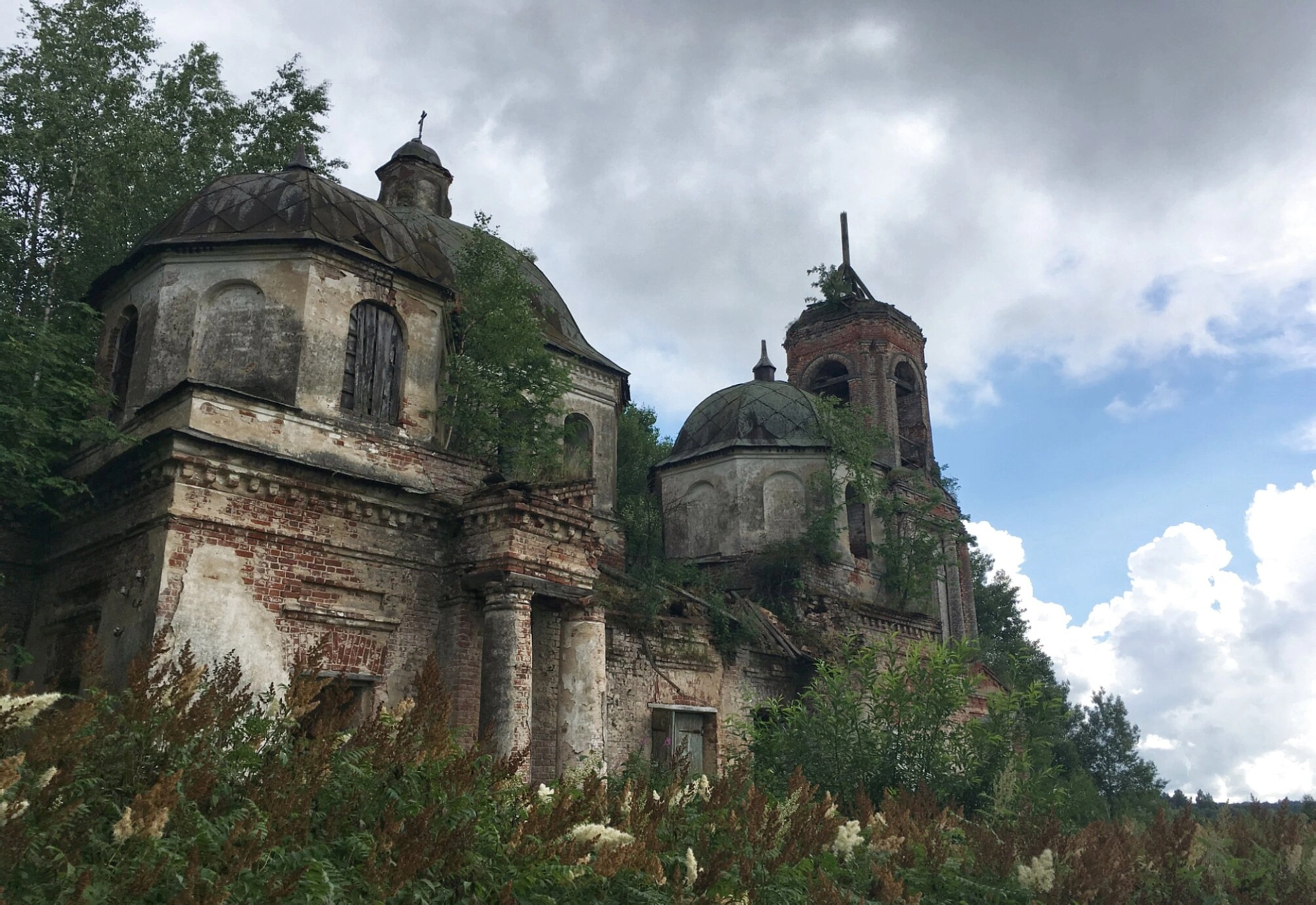 Несмотря на запустение, храм остаётся памятником культурного наследия и свидетельством многовековой православной истории края. Фотография передаёт атмосферу скорбной красоты и напоминает о необходимости сохранения таких исторических святынь. На снимке нет людей крупным планом; внимание полностью сосредоточено на архитектуре и природном окружении храма.