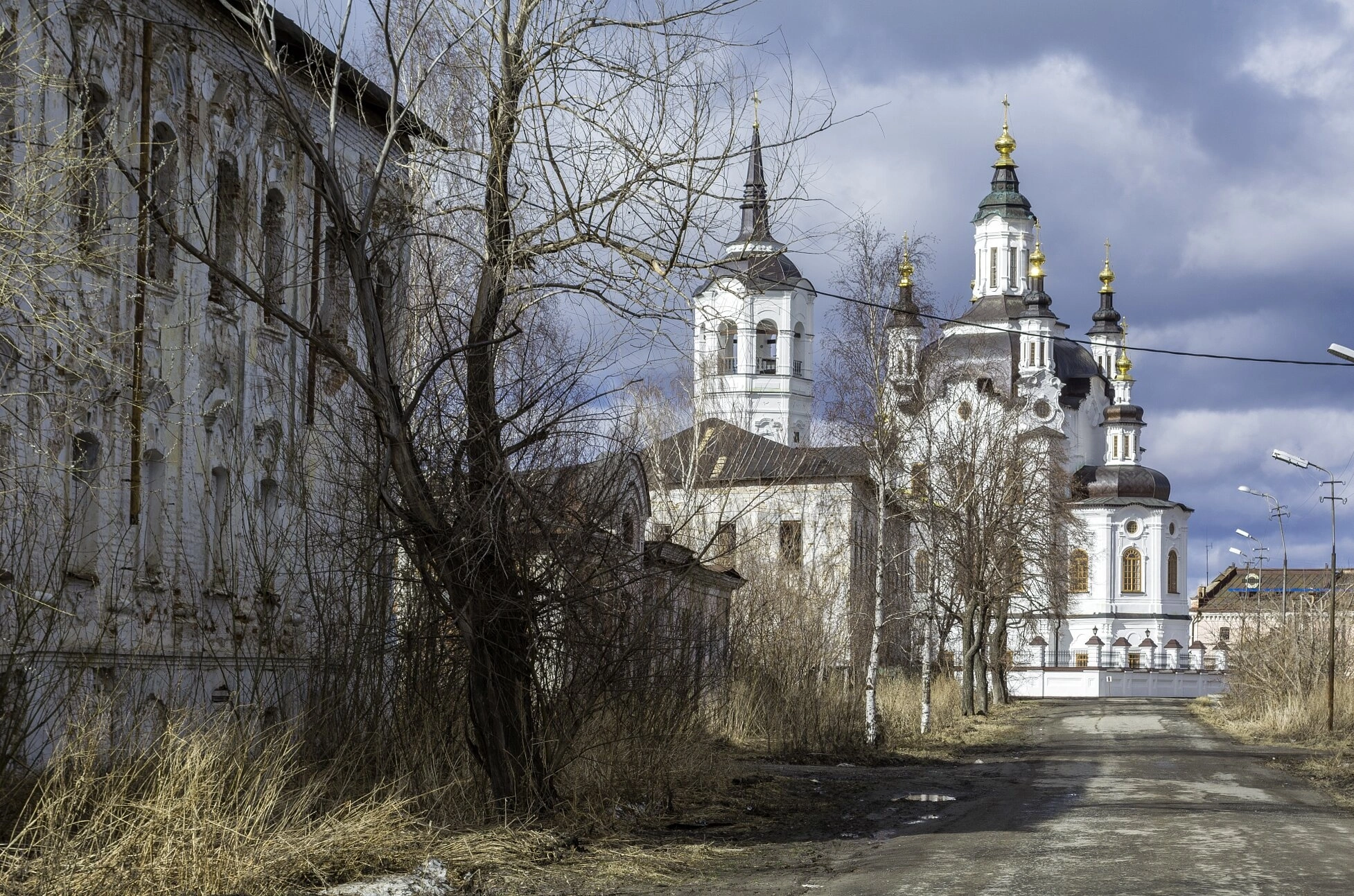 На фотографии запечатлена Церковь Захария и Елизаветы, также известная как Воскресенская церковь, — выдающийся православный храм в историческом центре Тобольска. Этот величественный памятник архитектуры XVIII века является одним из лучших образцов сибирского барокко в России.