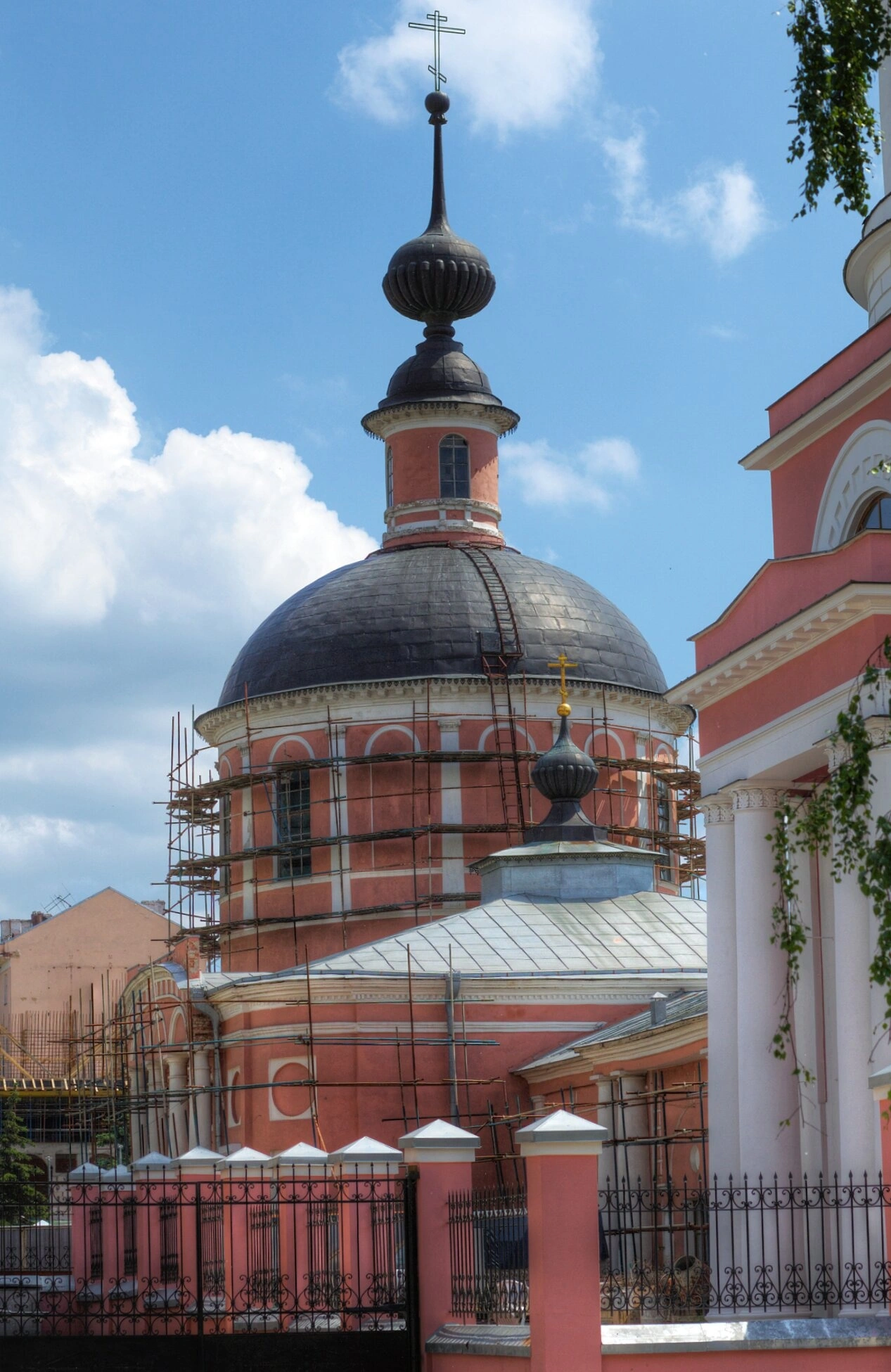 Архитектурный облик храма гармонично сочетает элементы барокко и классицизма, что было характерно для русского зодчества периода правления Екатерины Великой. Основной объём церкви увенчан мощным световым барабаном с главкой, а над западной частью возвышается изящная трёхъярусная колокольня со шпилем, которая служит высотной доминантой окружающей застройки.