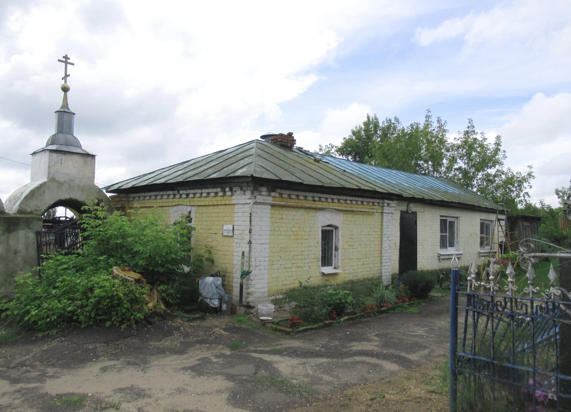 Перед зданием сторожки располагается ухоженная территория с зелёными насаждениями и цветниками, что свидетельствует о заботе и внимании, которые прихожане и духовенство уделяют внешнему виду святого места. Сам архитектурный облик постройки относится к концу XIX – началу XX века и характерен для церковно-приходских сооружений того периода, выполнявших хозяйственные и административные функции при храме.