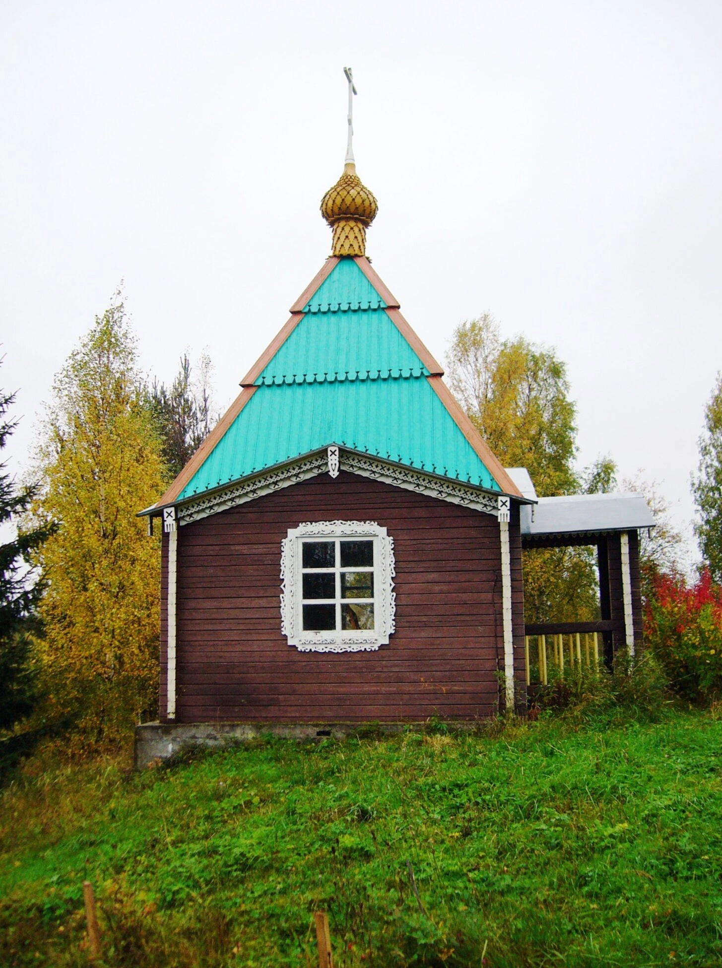 На представленной фотографии запечатлена часовня во имя преподобного Иоанна Рыльского, расположенная в священных пределах Важеозерского Спасо-Преображенского мужского монастыря в Карелии. Эта благодатная обитель, основанная в XVI веке преподобными Геннадием и Никифором Важеозерскими, издревле является одним из значимых духовных центров Русского Севера.