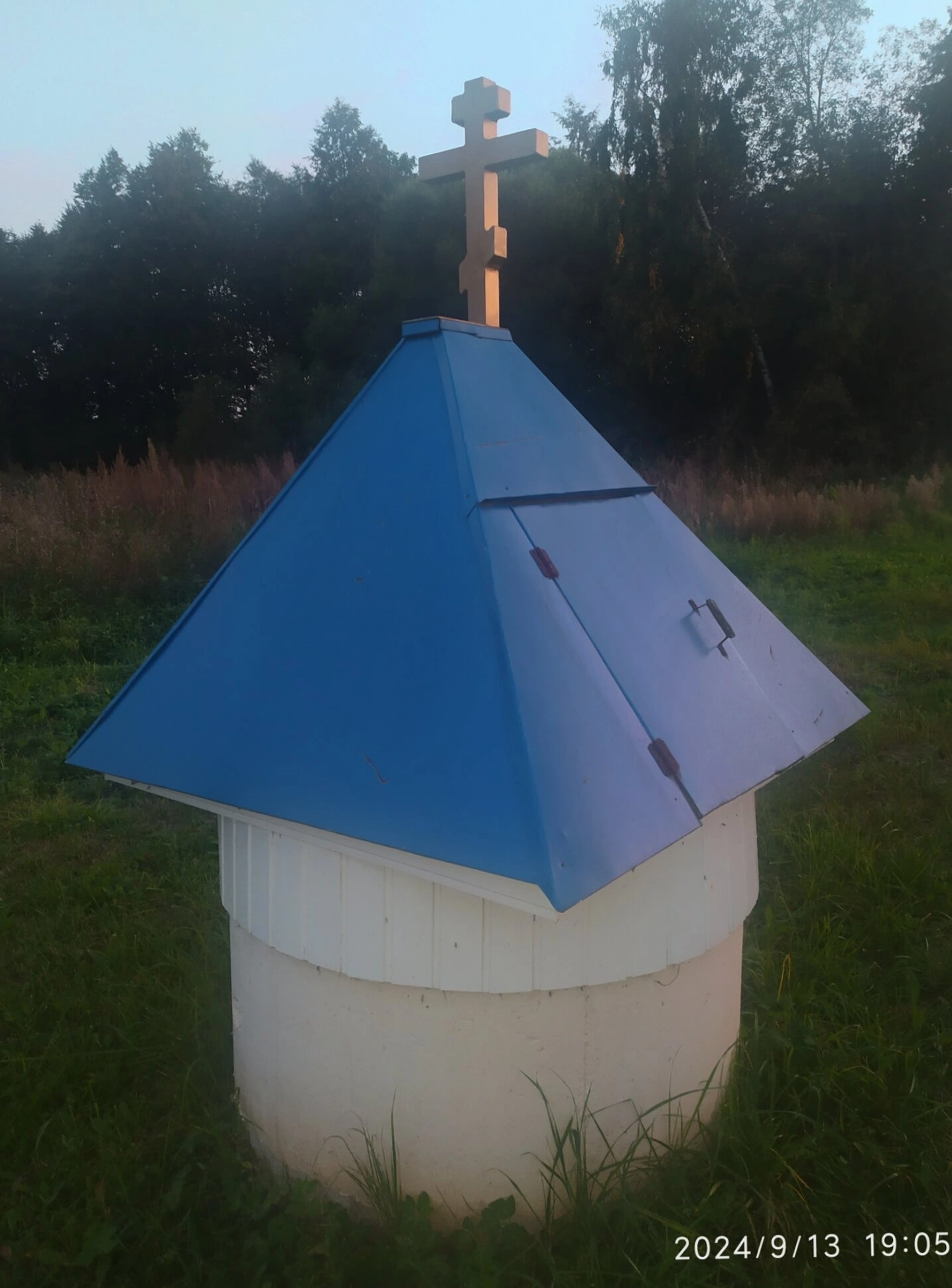 На представленной фотографии запечатлена часовня-колодец, освящённая в честь Тихвинской иконы Божией Матери, расположенная в деревне Титовское Сергиево-Посадского городского округа Московской области. Данная святыня находится в непосредственной близости от Церкви Успения Пресвятой Богородицы, составляя с ней единый духовный комплекс.