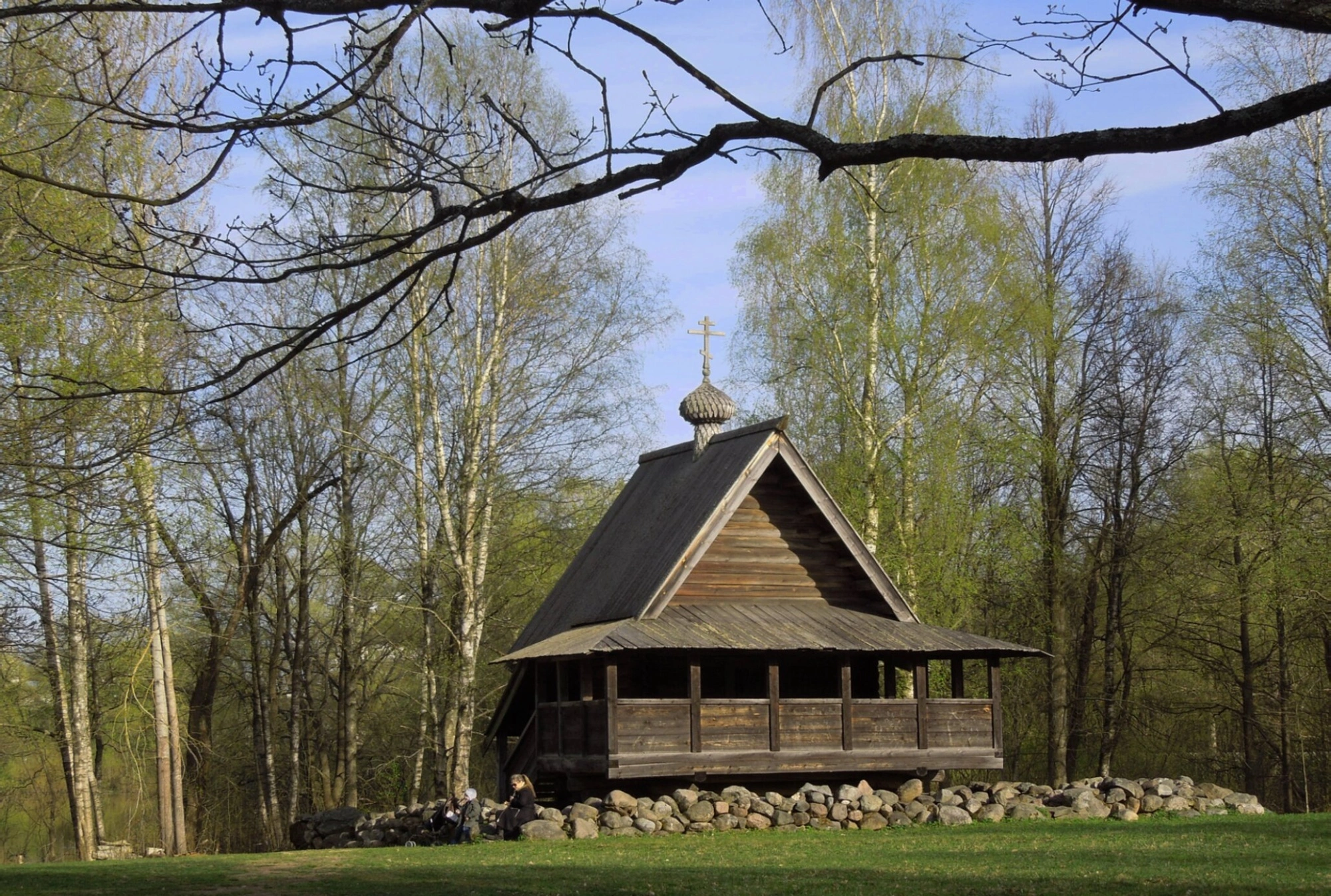 На представленной фотографии запечатлена часовня во имя святой равноапостольной Марии Магдалины, перенесённая из деревни Малышево Пестовского района и ныне пребывающая в музее деревянного зодчества «Витославлицы» под Великим Новгородом. Это памятник клетского храмового зодчества, созданный во второй половине XVIII столетия. В 1981–1986 годах часовня была перевезена на территорию музея, где underwent тщательную реставрацию, возвратившую ей первоначальный облик.