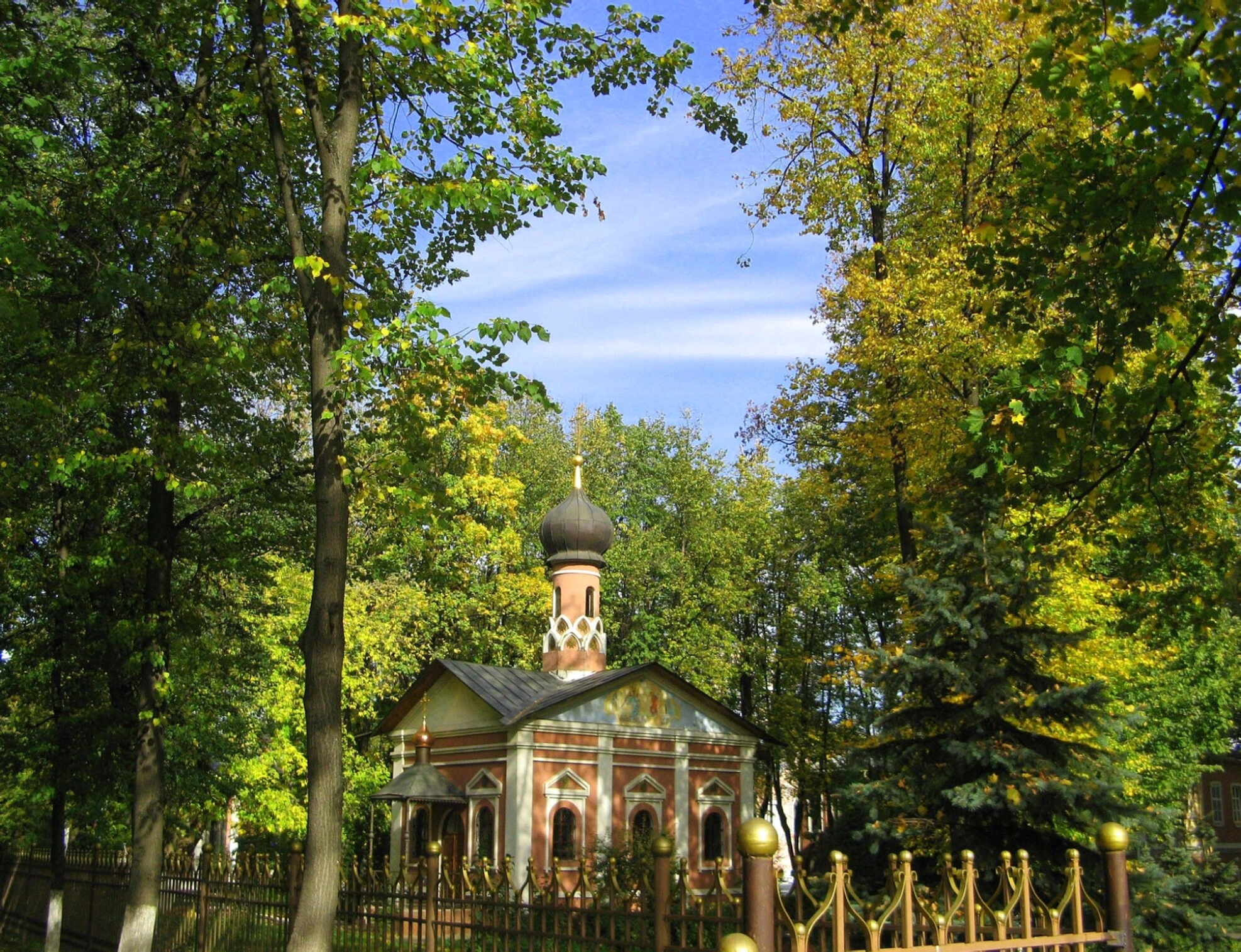 На представленной фотографии запечатлена часовня во имя святого Архистратига Михаила, расположенная в пределах одной из древнейших и наиболее почитаемых обителей столицы — Донского ставропигиального мужского монастыря. Это малая церковь, исполненная благолепия и строгой монастырской простоты, служит примером традиционного русского церковного зодчества.