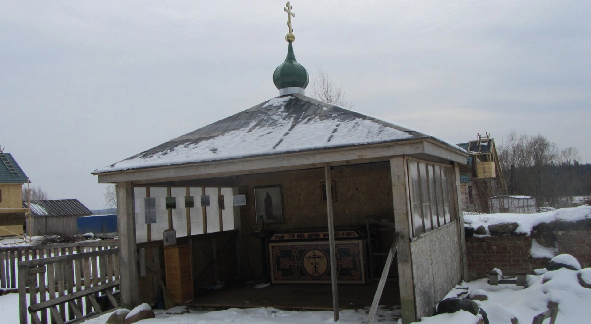 На фотографии запечатлена деревянная часовня, расположенная на Святом острове Ондрусовского озера в Олонецком районе Республики Карелия. Это священное место является частью исторической Андрусовской мужской пустыни, основанной в XVI веке учеником преподобного Александра Свирского — святым Адрианом Ондрусовским.